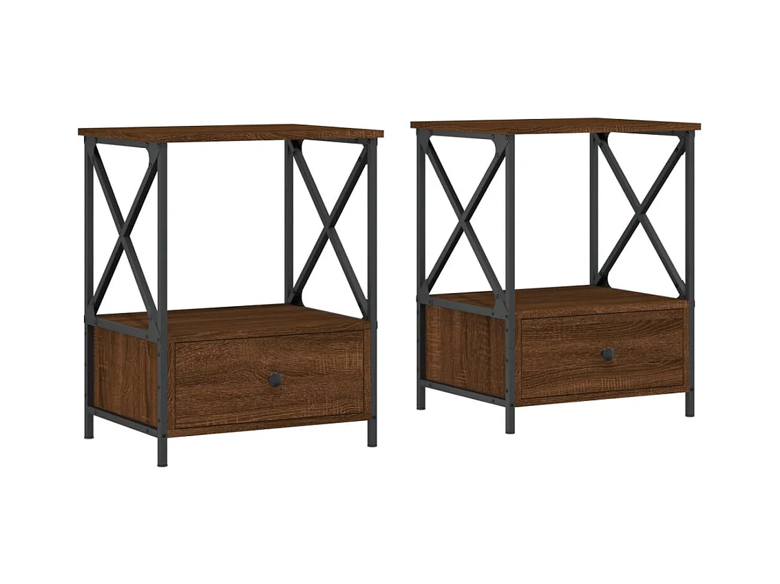 Mesa de Cabeceira Moderna 2 peças derivados de madeira carvalho castanho