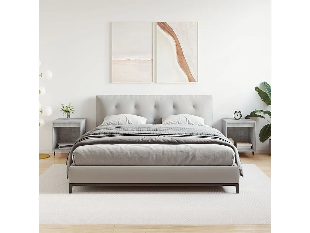 Mesa de Cabeceira Moderna 2 peças derivados de madeira cinzento cimento