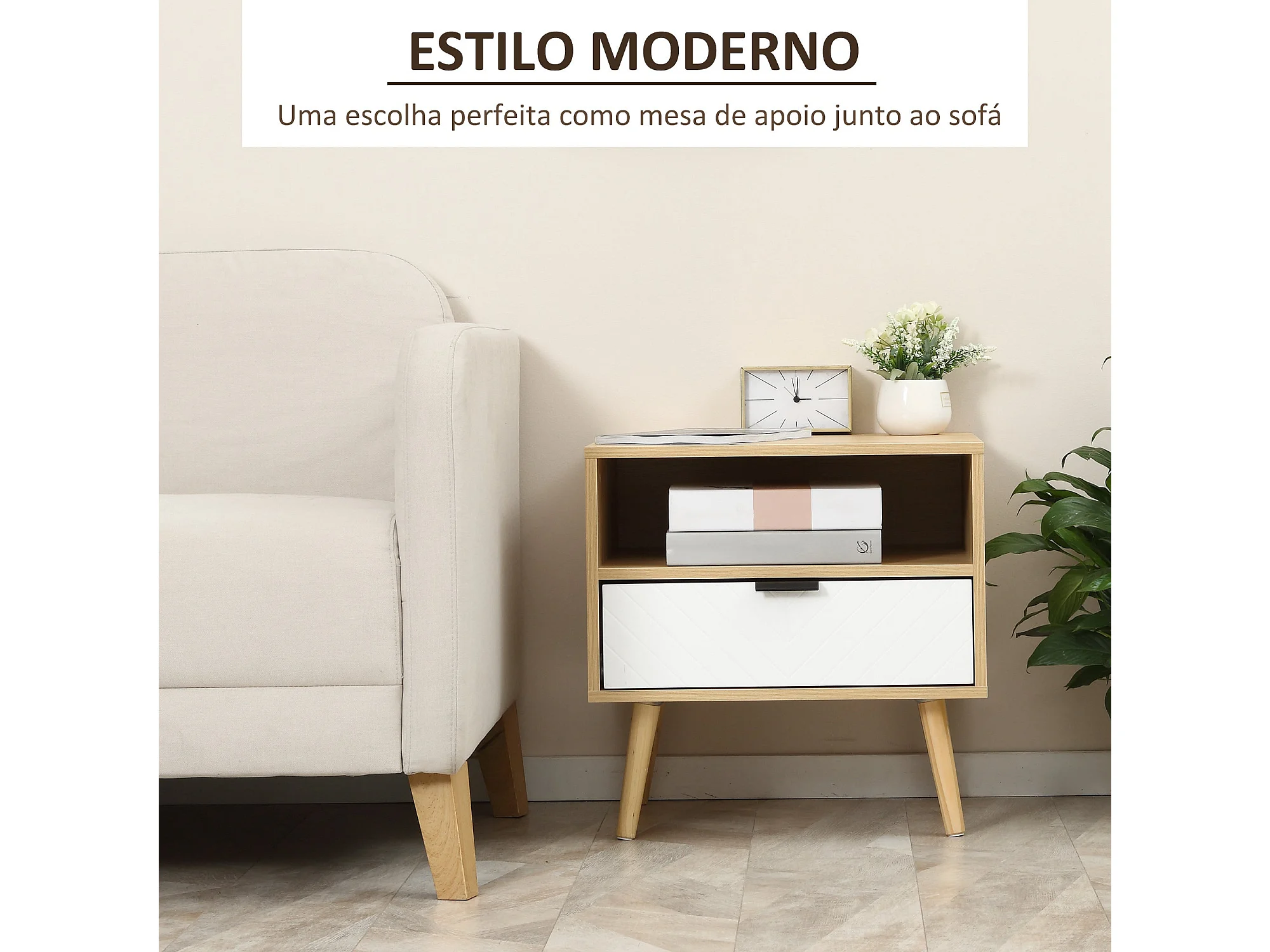 Mesa de Cabeceira Moderna com 1 Gaveta e Prateleira Aberta – Ideal para Quarto e Escritório