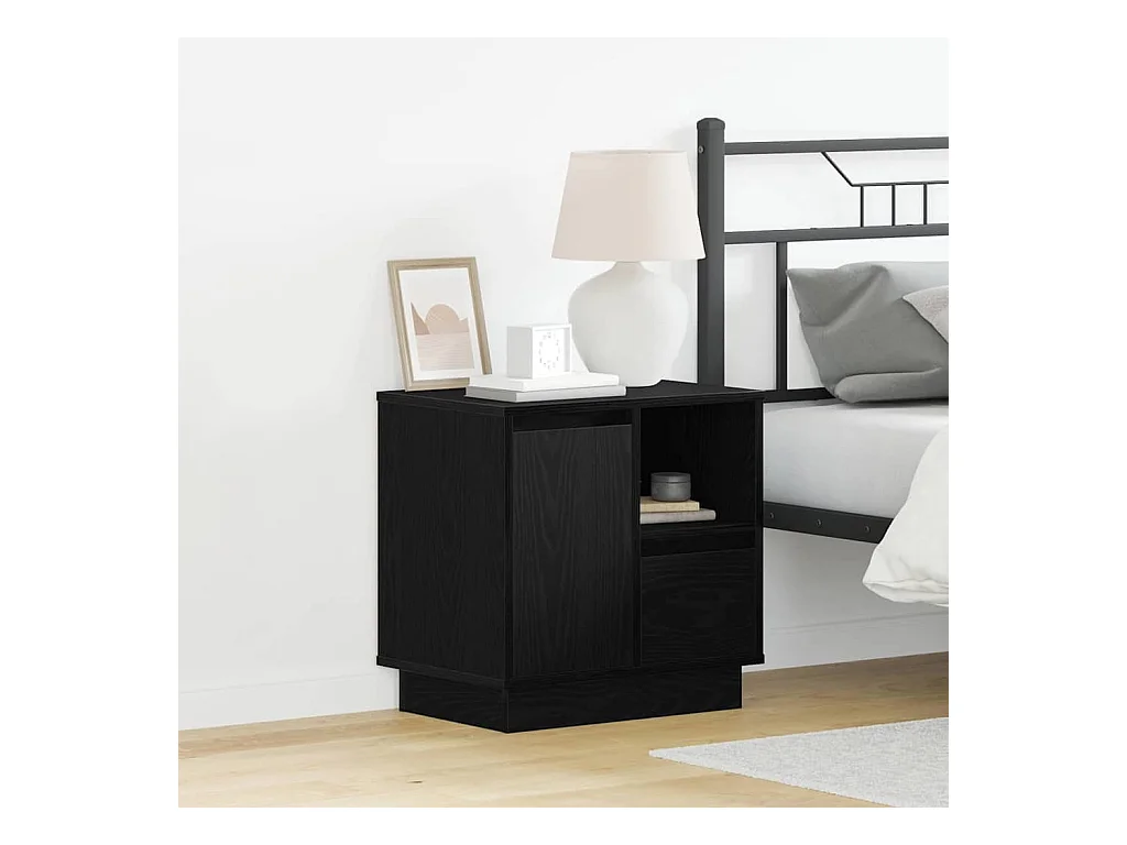Mesa de Cabeceira Moderna com gaveta 2 peças Preto 50x34.5x50 cm.