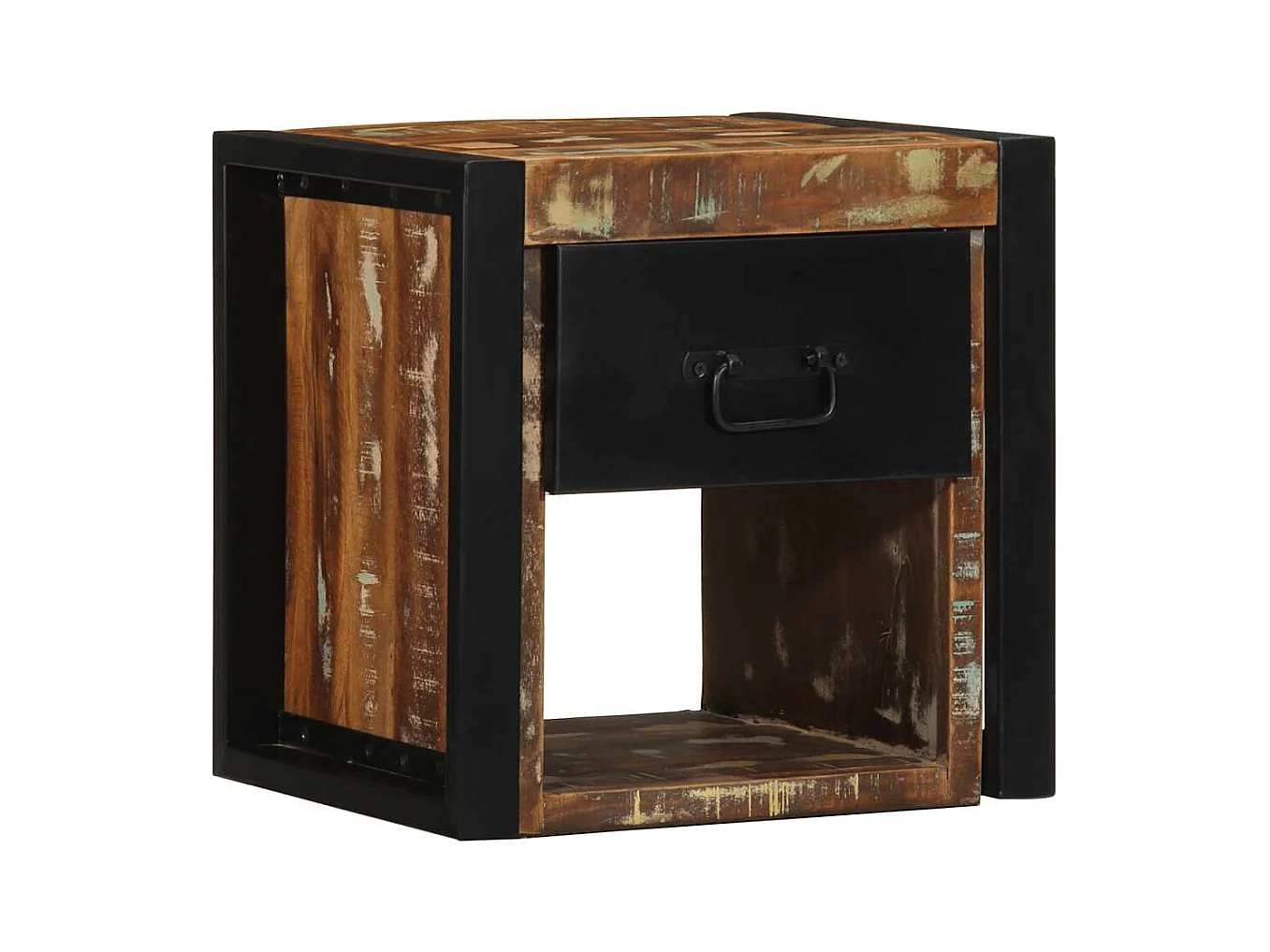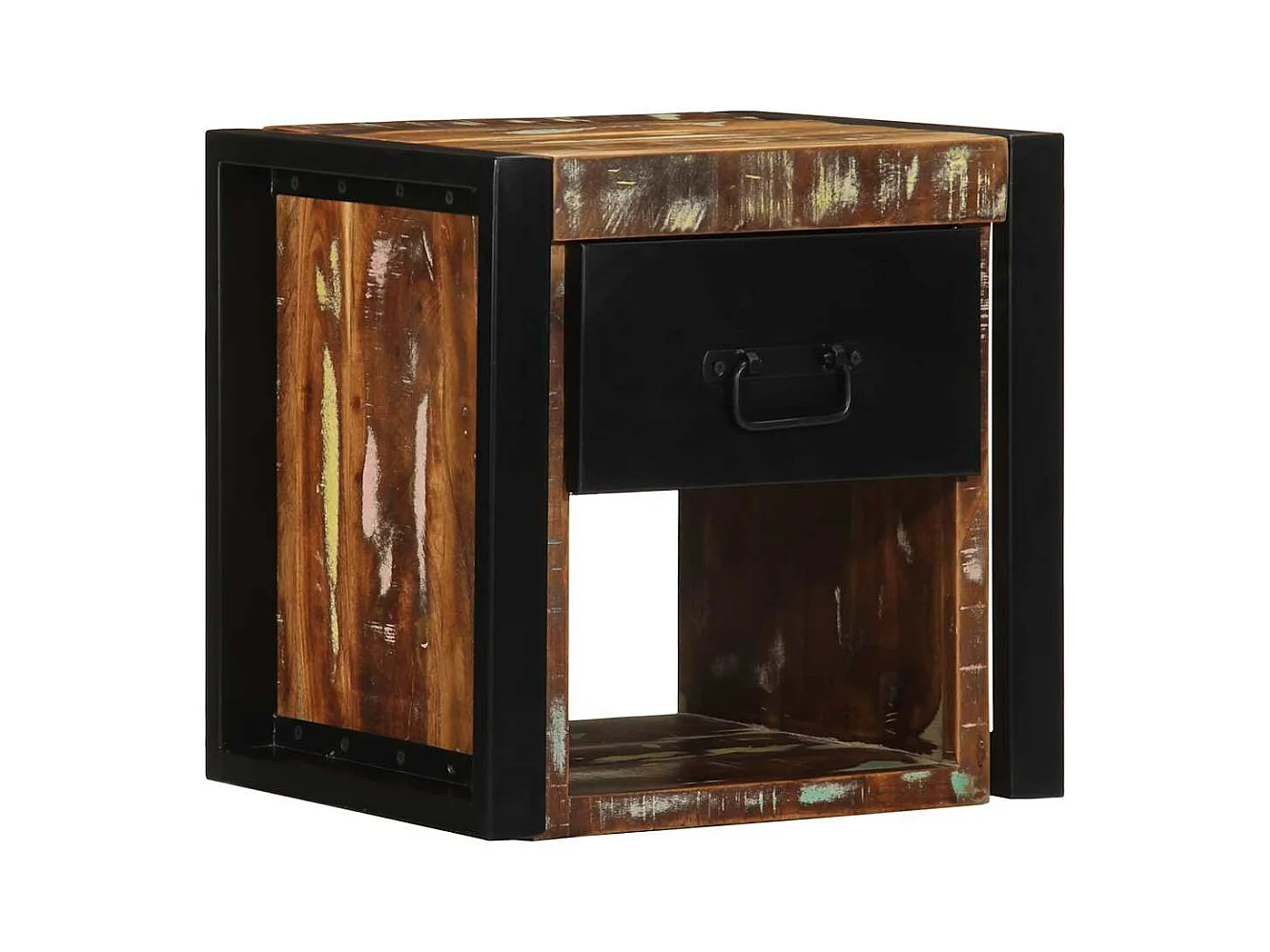 Mesa de cabeceira multicor 40x35x40cm madeira maciça recuperada
