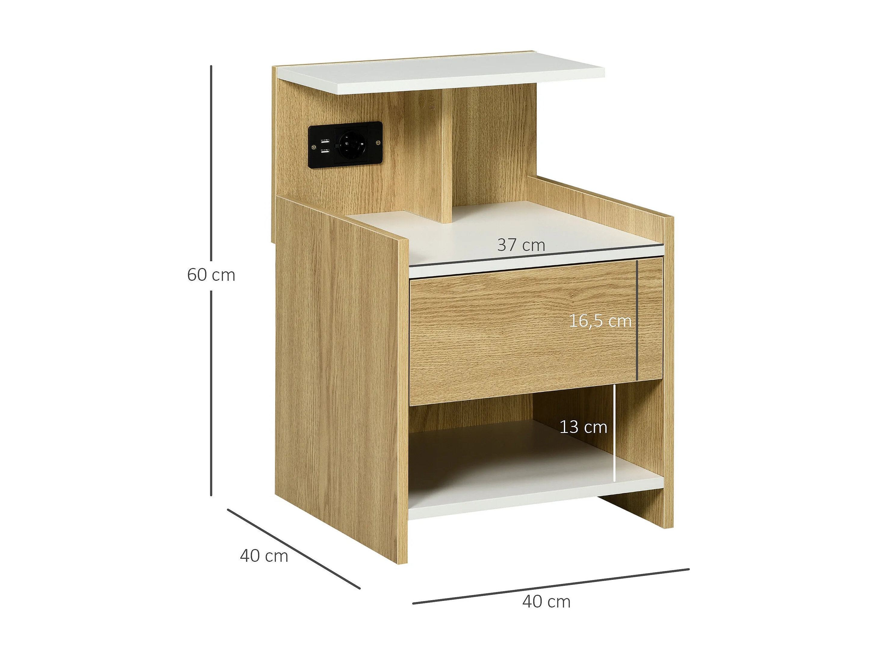 Mesa de Cabeceira Nordik com USB e Tomada Elétrica – Prática e Moderna 40x40x60 cm