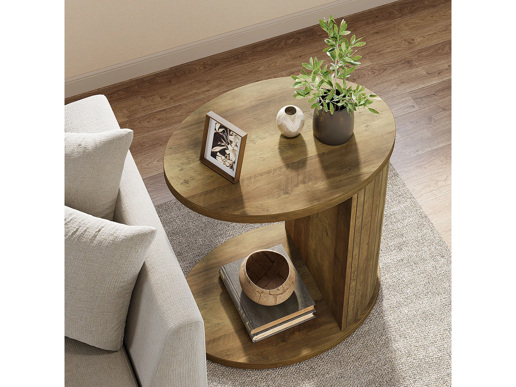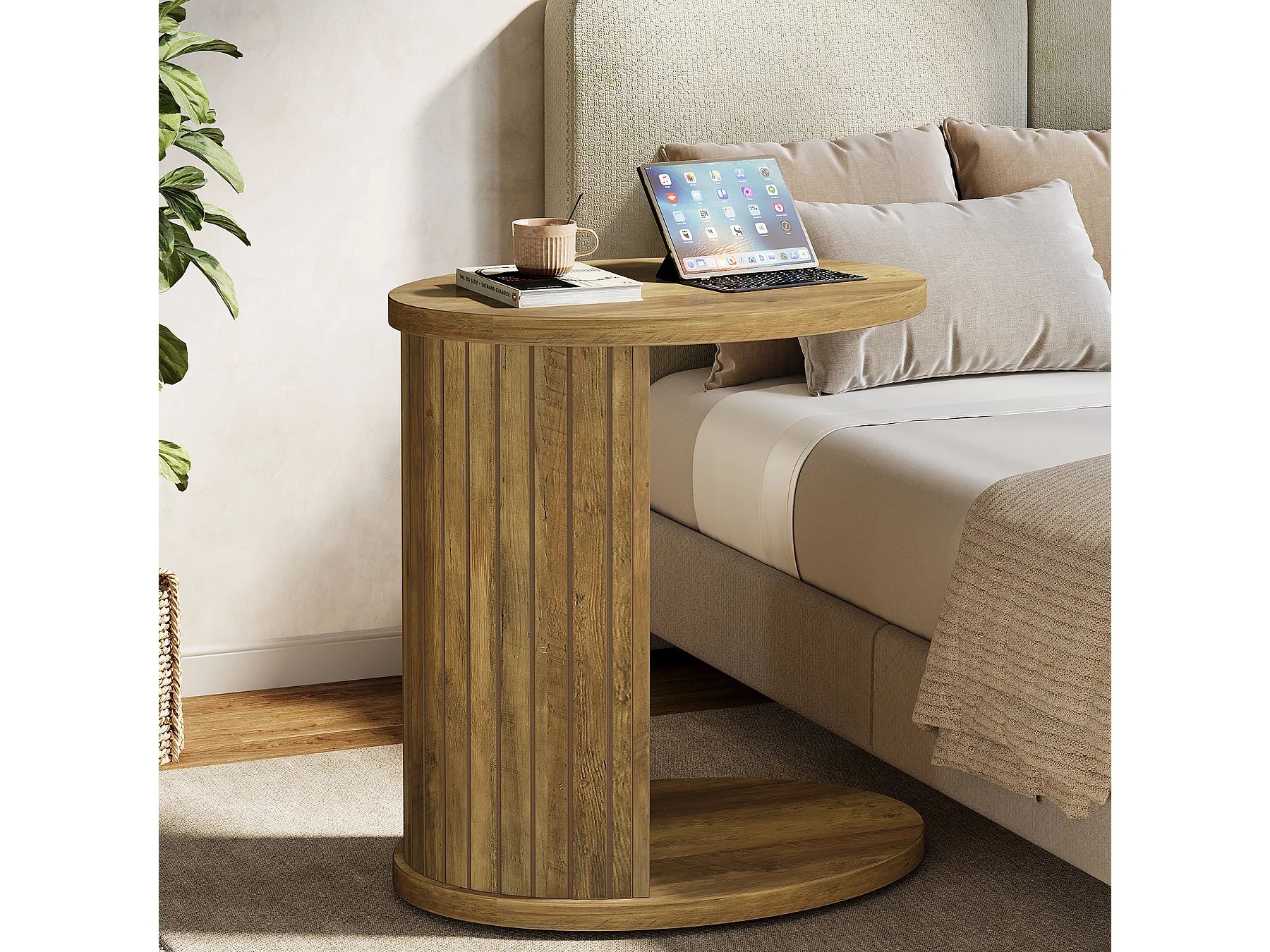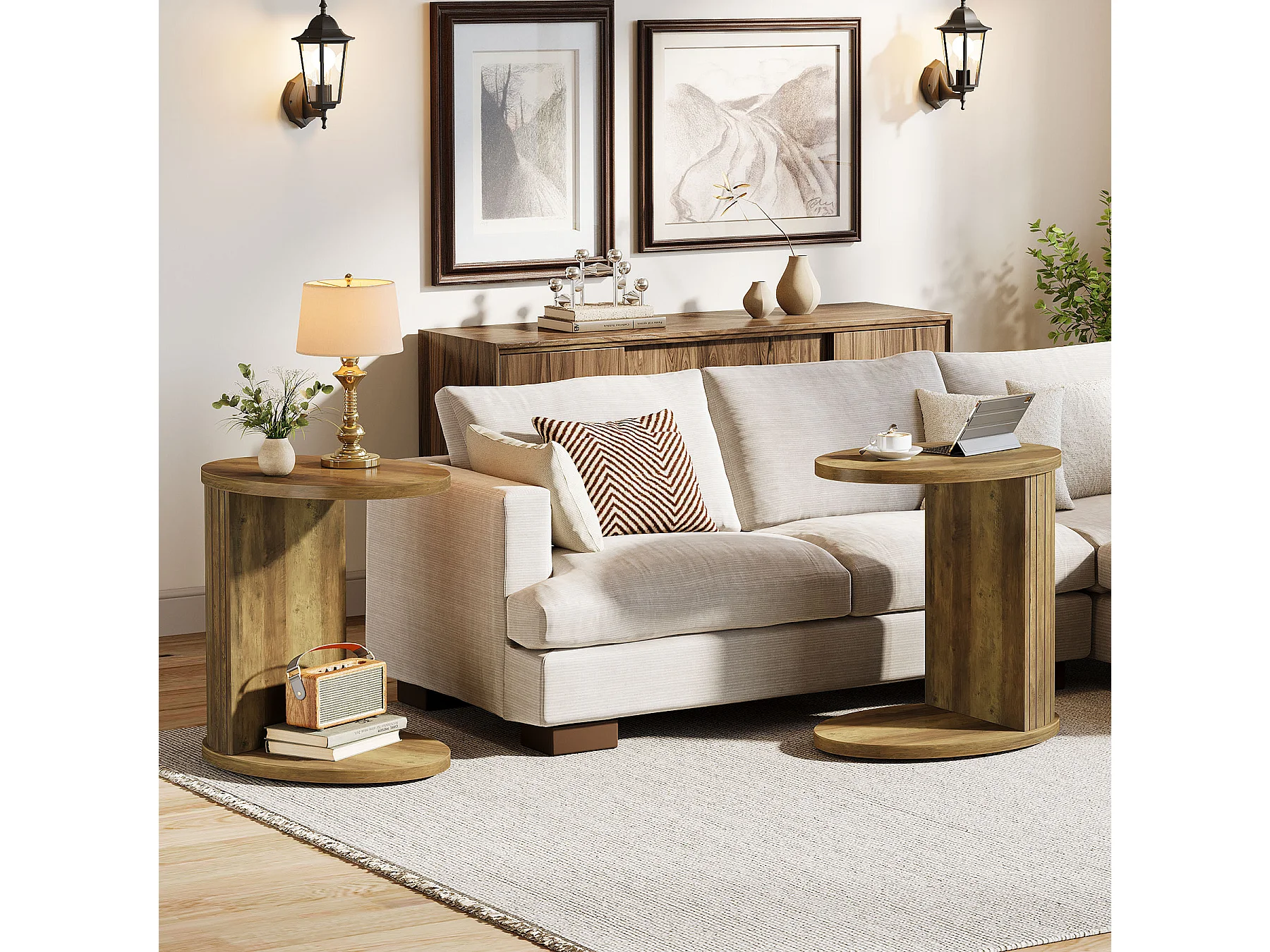 Mesa Lateral em Forma de C para Sofá, Mesa C de 2 Andares com Base Resistente