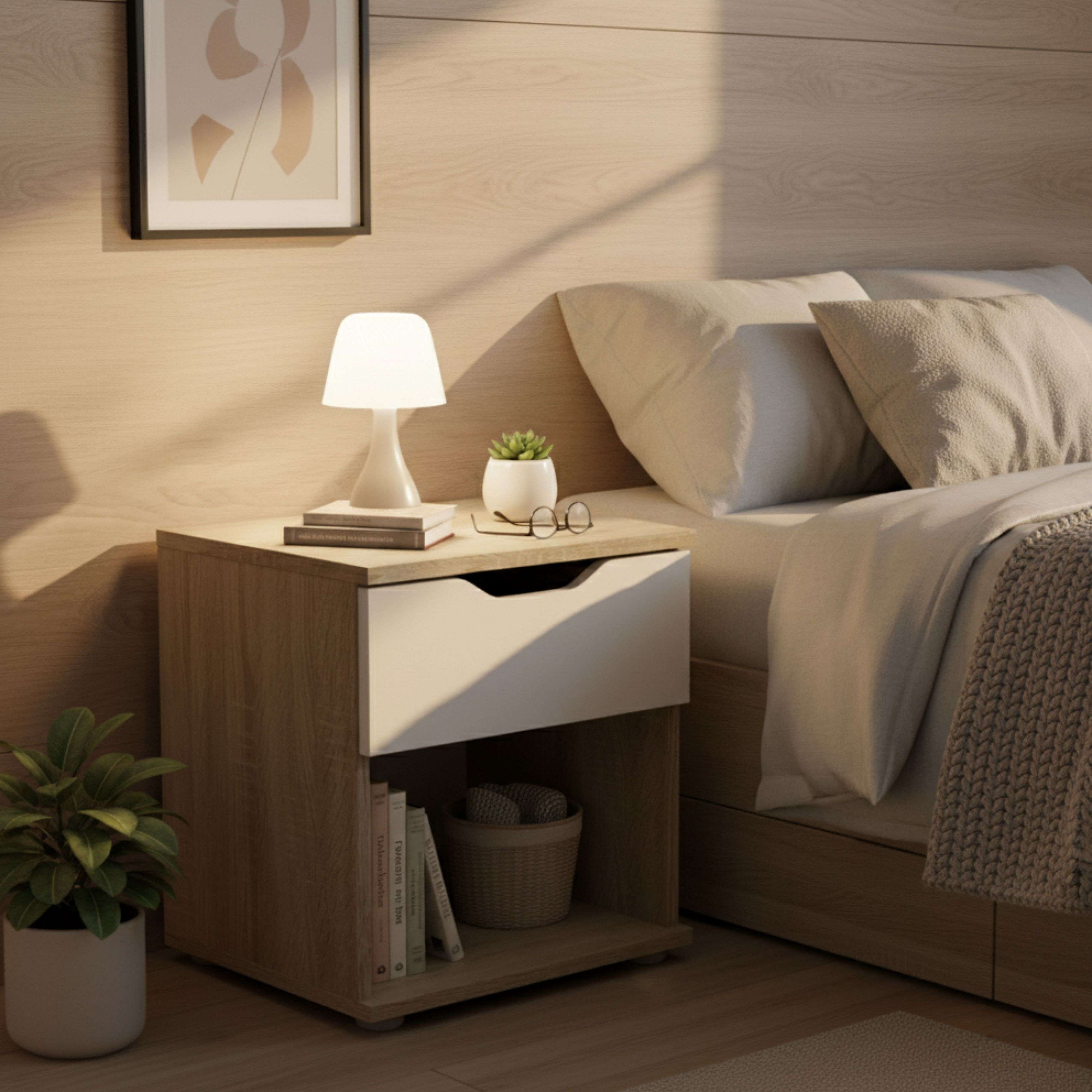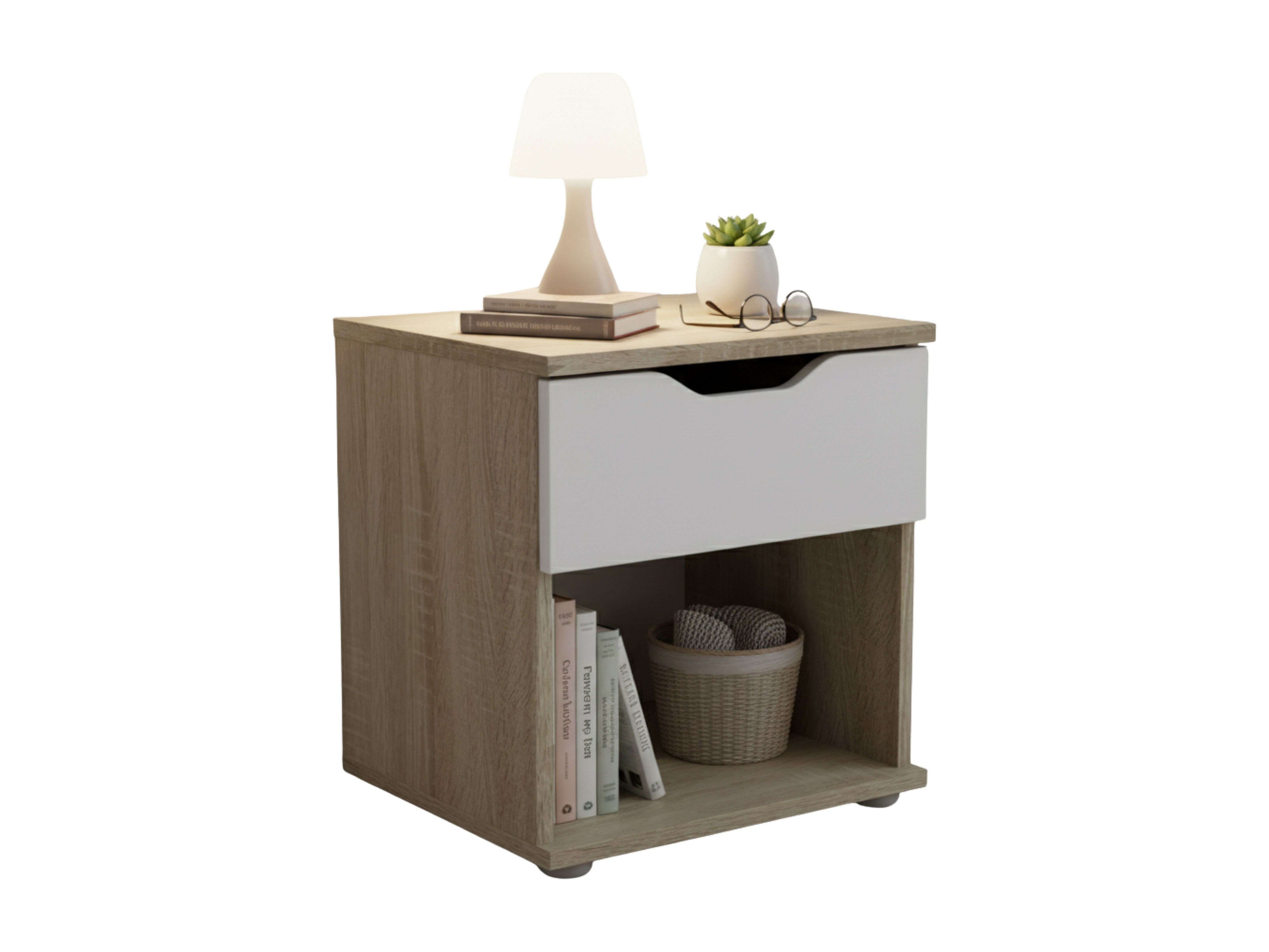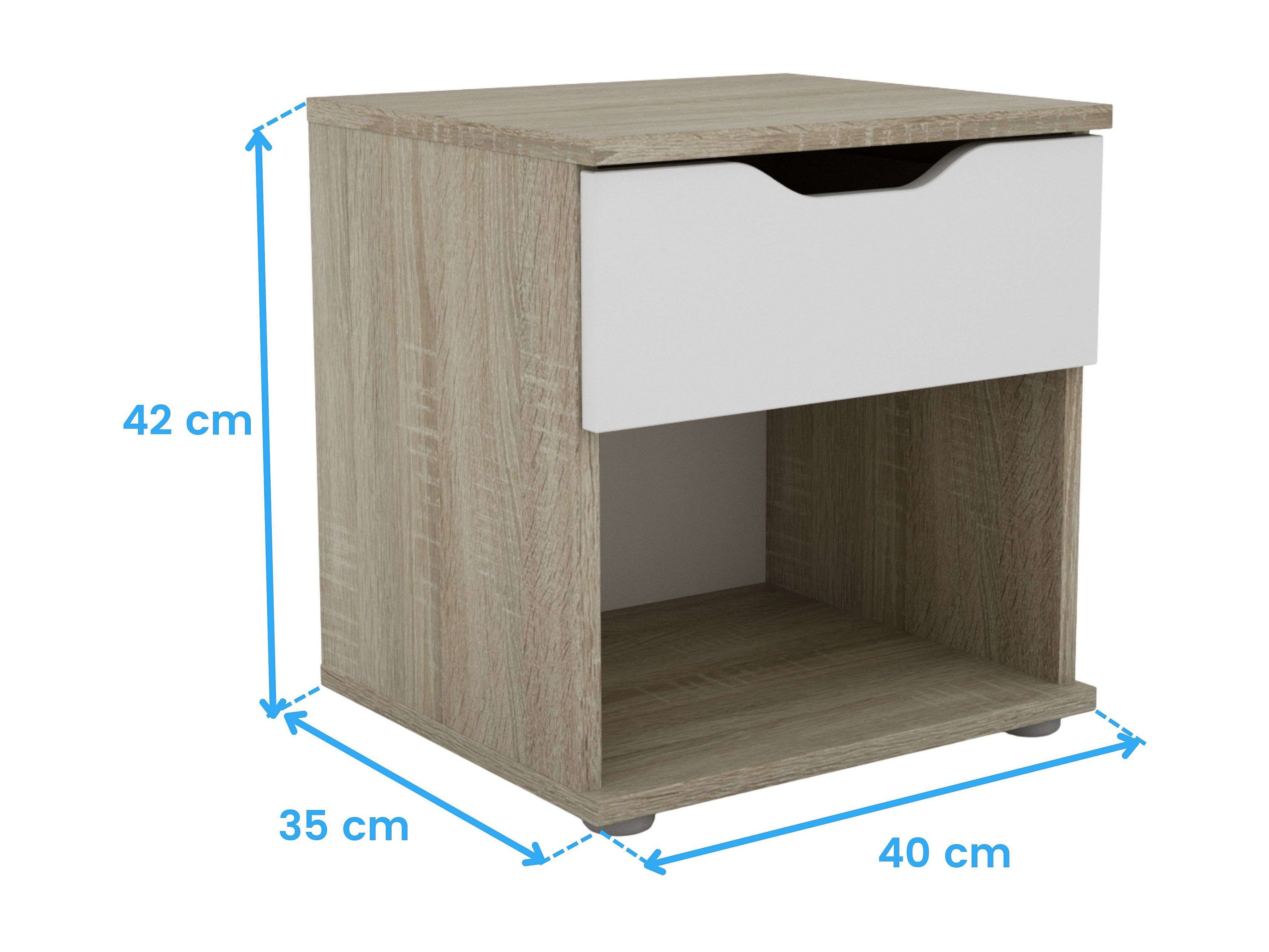 Mesa de cabeceira Parc Bedroom 1 gaveta Sonoma Oak/Branco 40x42x35 cm