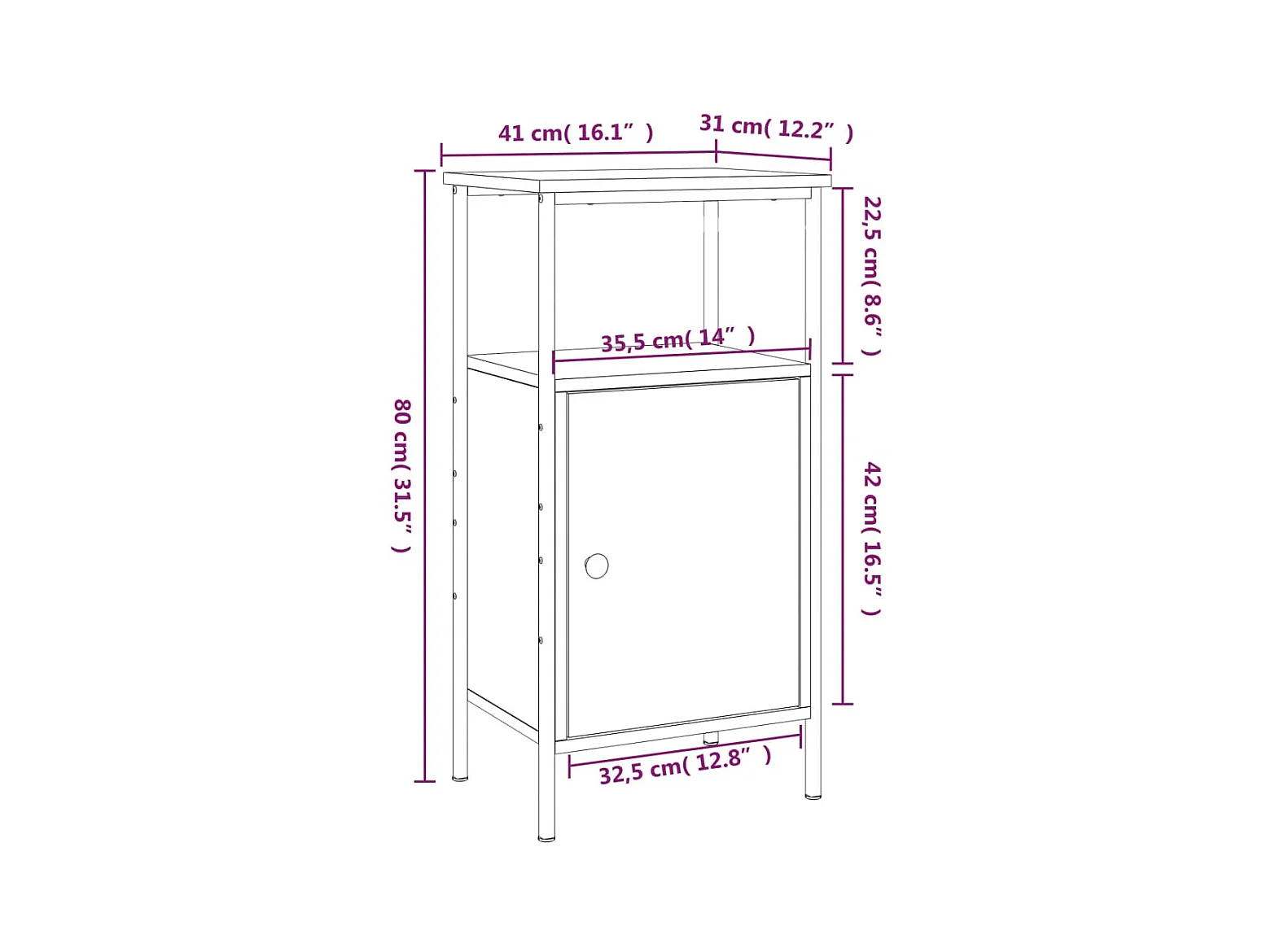 Mesa de cabeceira 60x31x60 cm madeira e metal preto