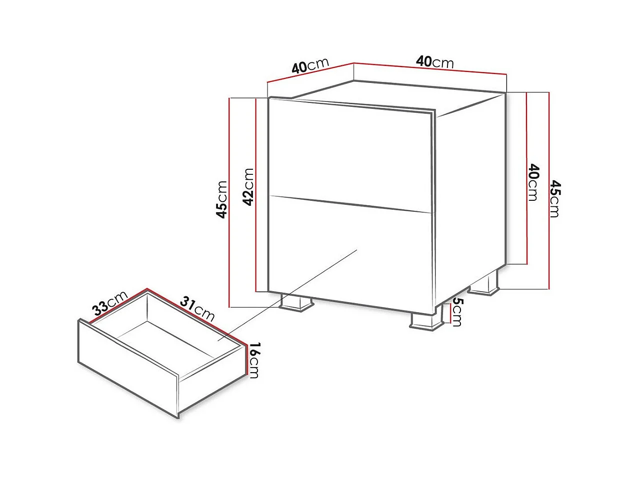 Mesa de cabeceira Tivdalu 127, Número de gavetas: 2, 5x4x4cm