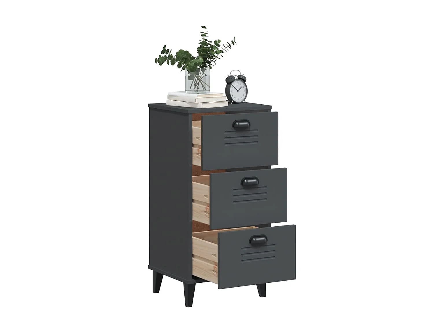 Mesa de cabeceira VIKEN madeira de pinho maciça antracite