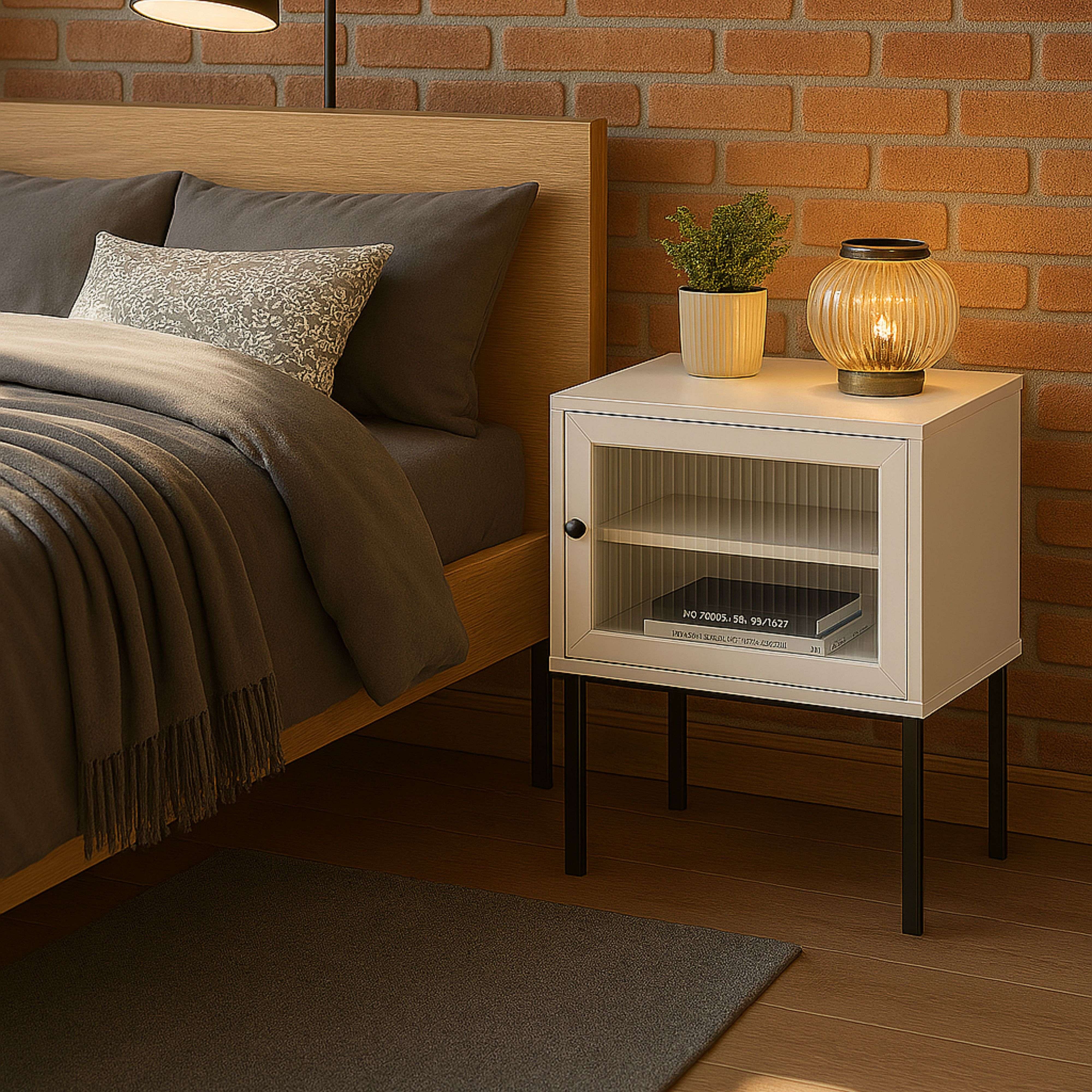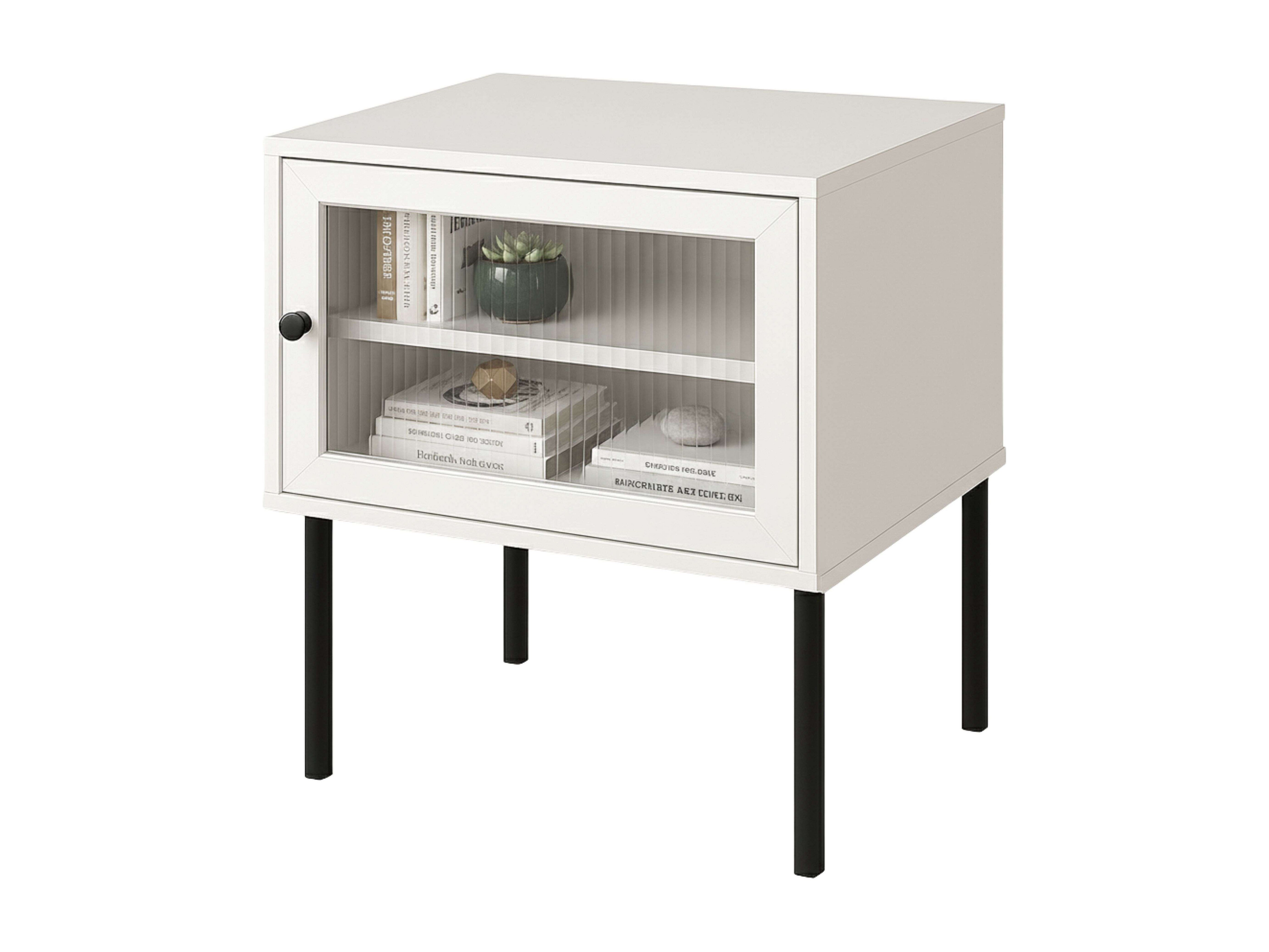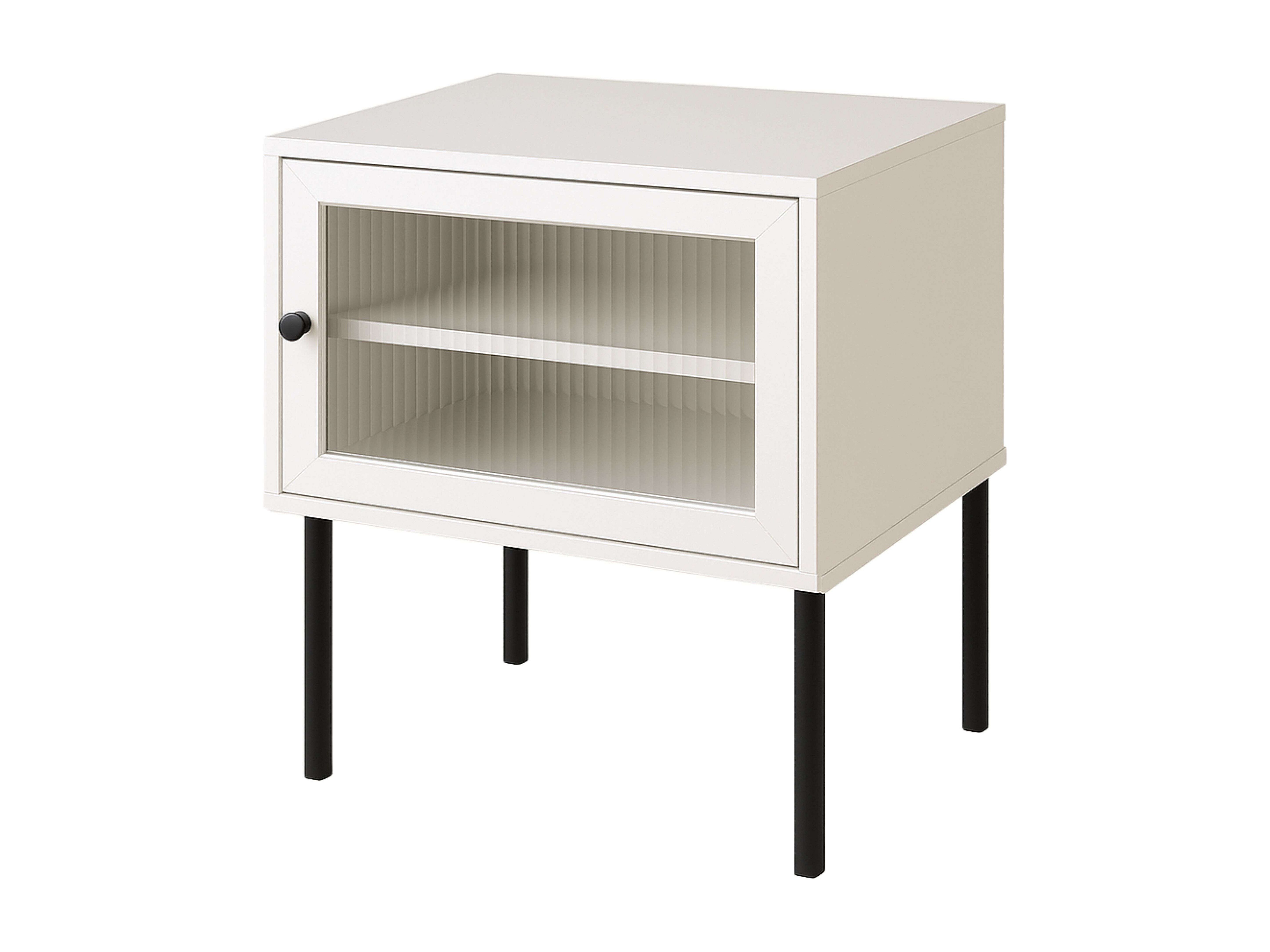 Mesa de cabeceira Vitinia com 1 porta de vidro, branco/preto, 45,5x40x30 cm