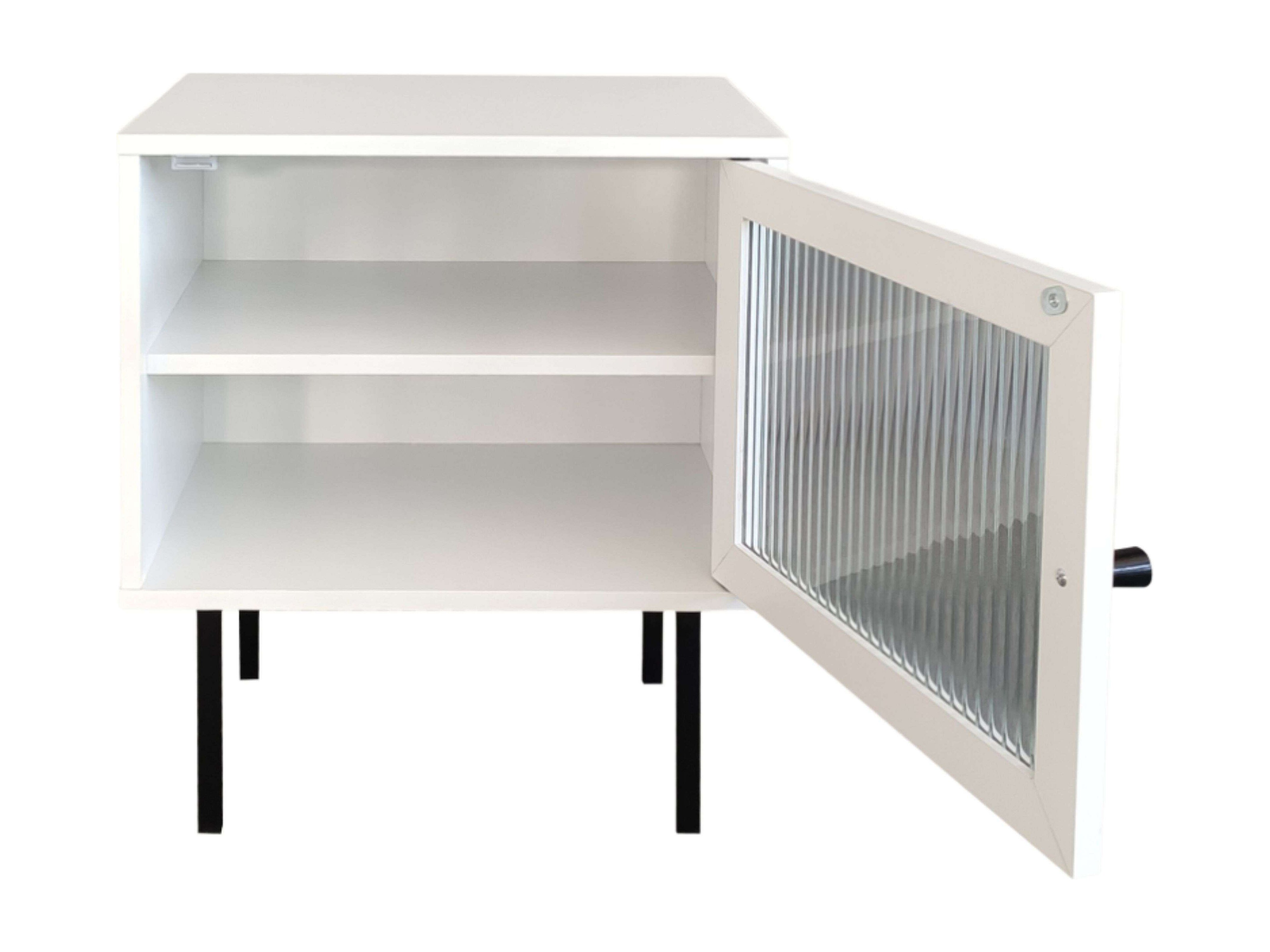 Mesa de cabeceira contemporânea Losi para quarto branca com 1 porta e 1 espaço aberto