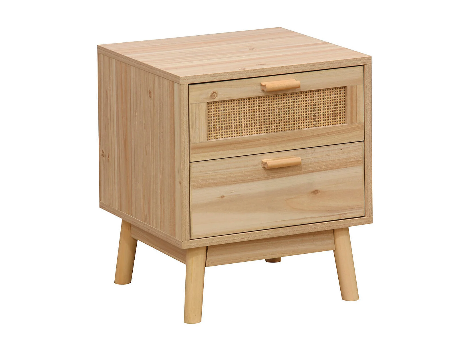 Mesa de cabeceira Vogue com 2 gavetas em melamina de pinho e rattan - 40x48x39 cm