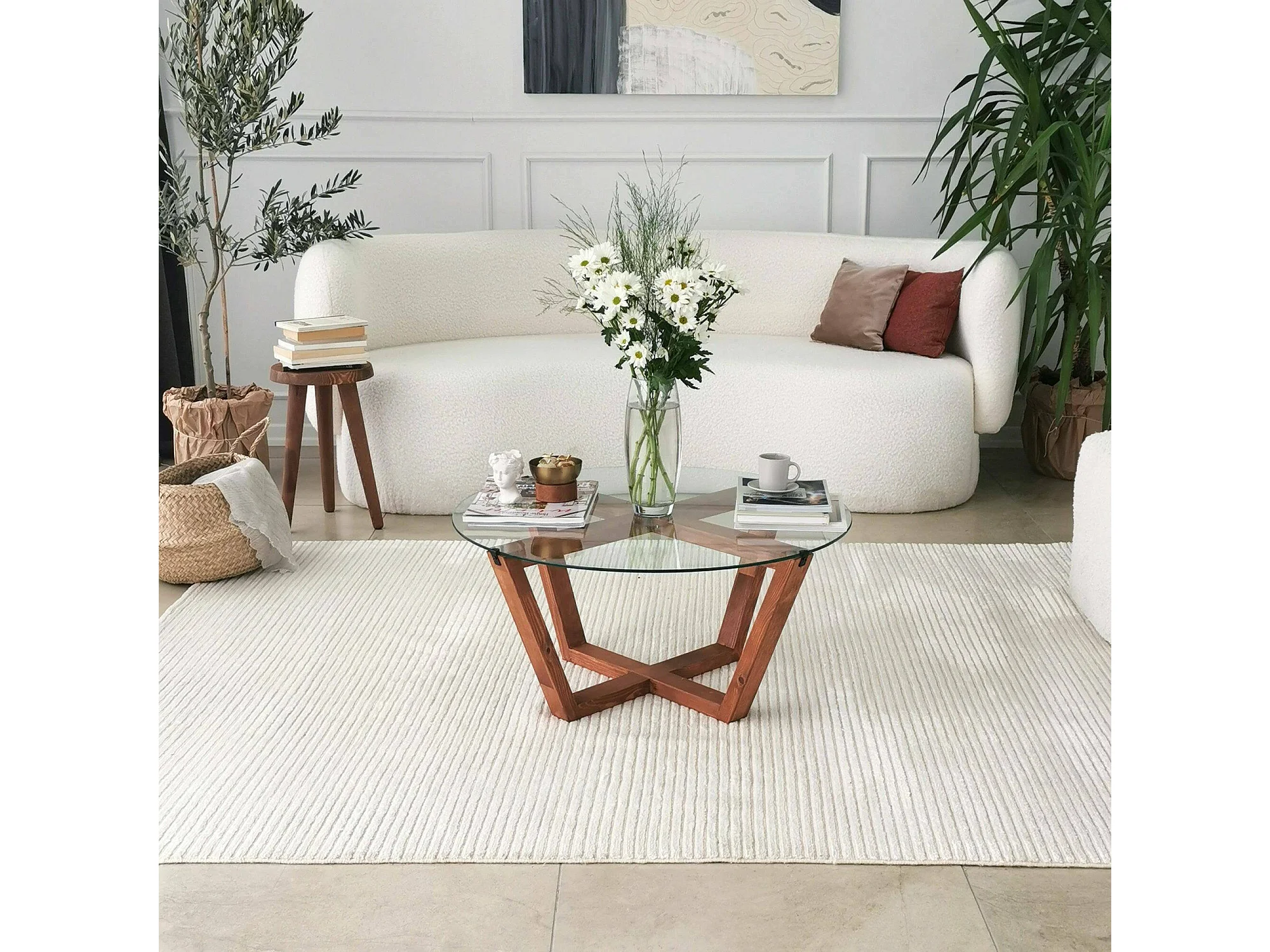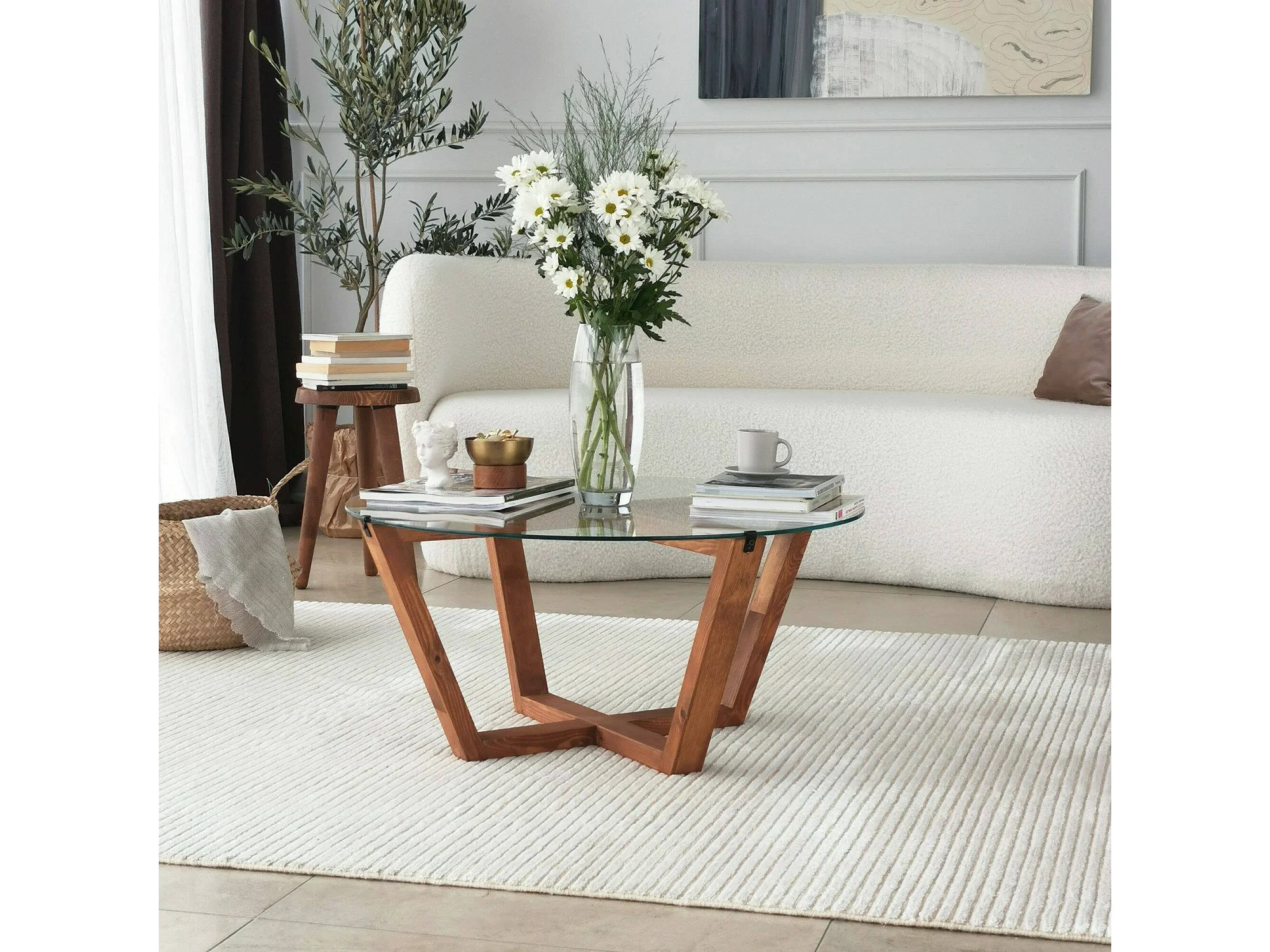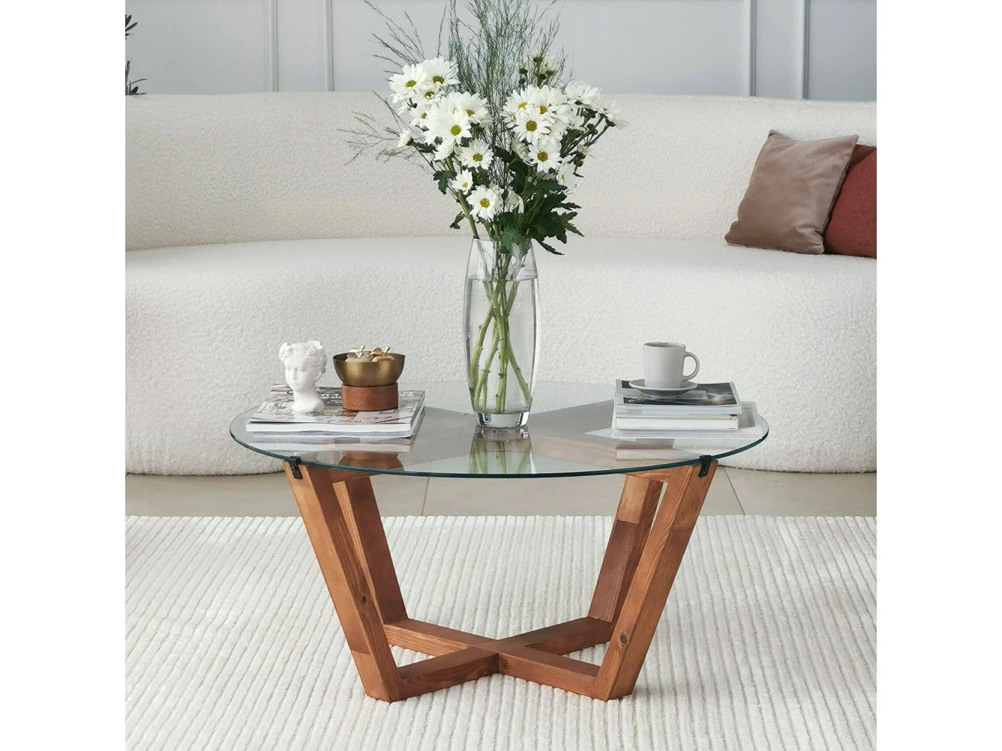 Mesa de café Dflorenz, TavOlo baixo de café, Suporte de revistas para sofá, Prateleira de sala de estar, 75x75h35 cm, Noz