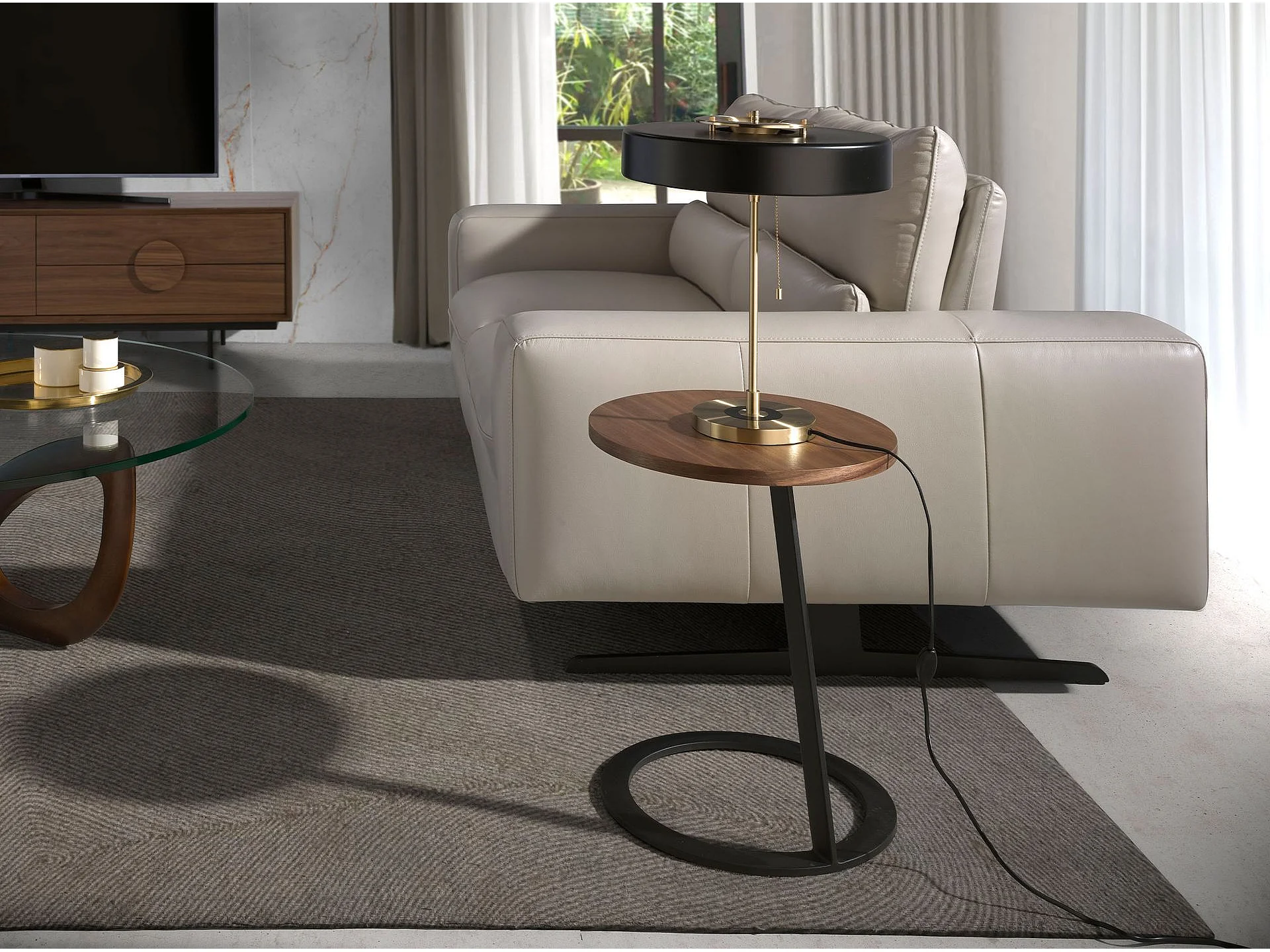 Mesa de canto redonda em nogueira e aço preto 2115 ANGEL CERDA