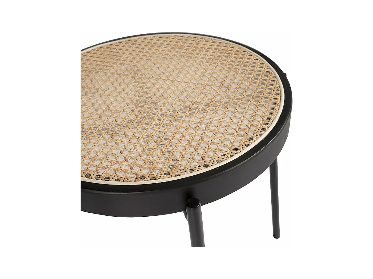 Mesa de canto redonda em rattan e aço preto 2109