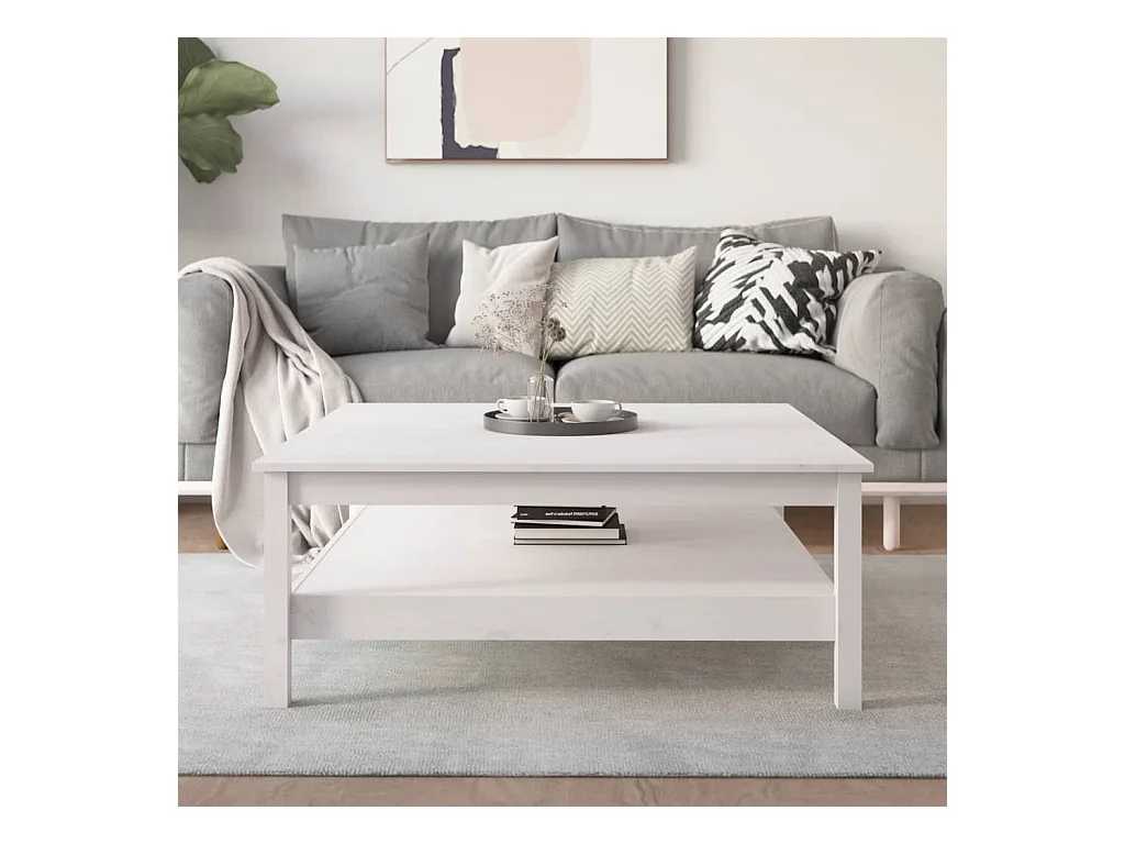 Mesa de centro | Mesa de apoio branca 100x100x40 cm madeira maciça pinho