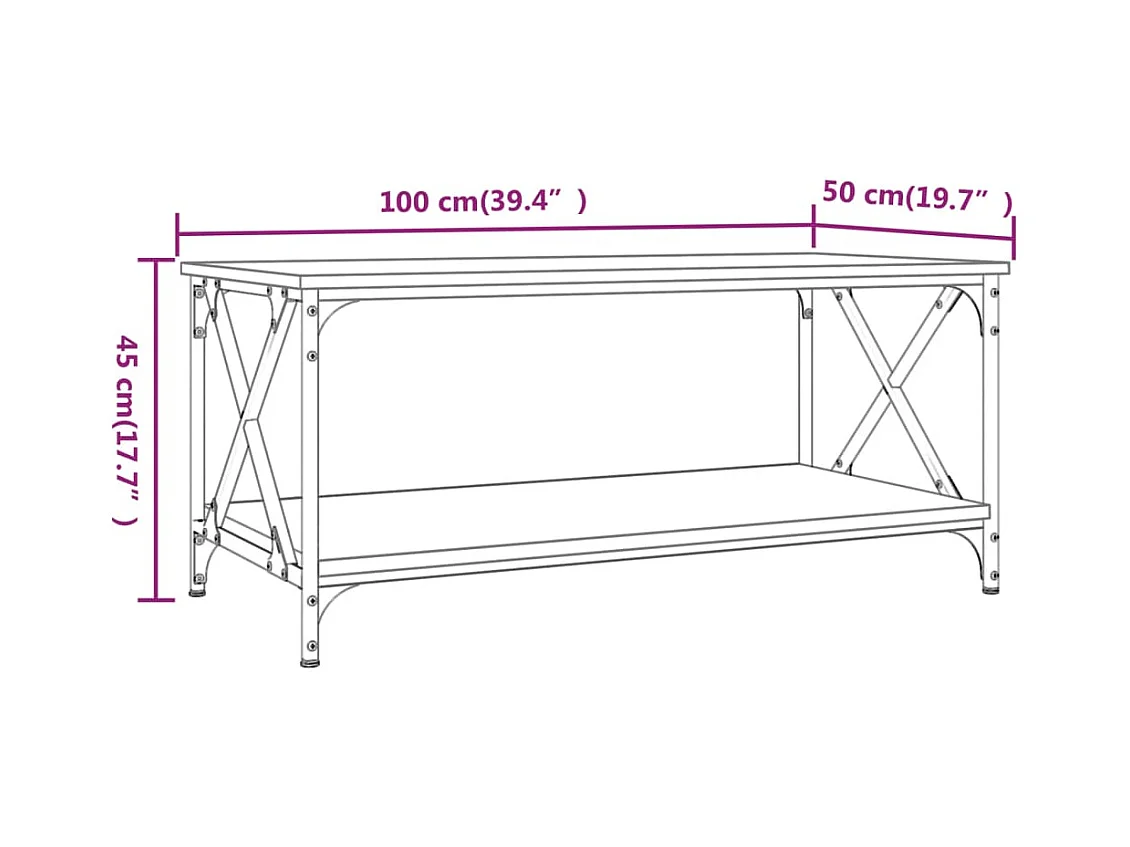 Mesa de centro 100x50x45cm deriv. madeira/ferro carvalho fumado