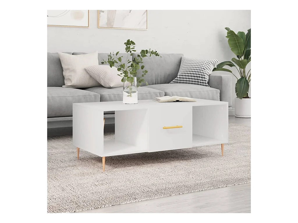 Mesa de centro 102x50x40 cm madeira processada branco brilhante PT568373
