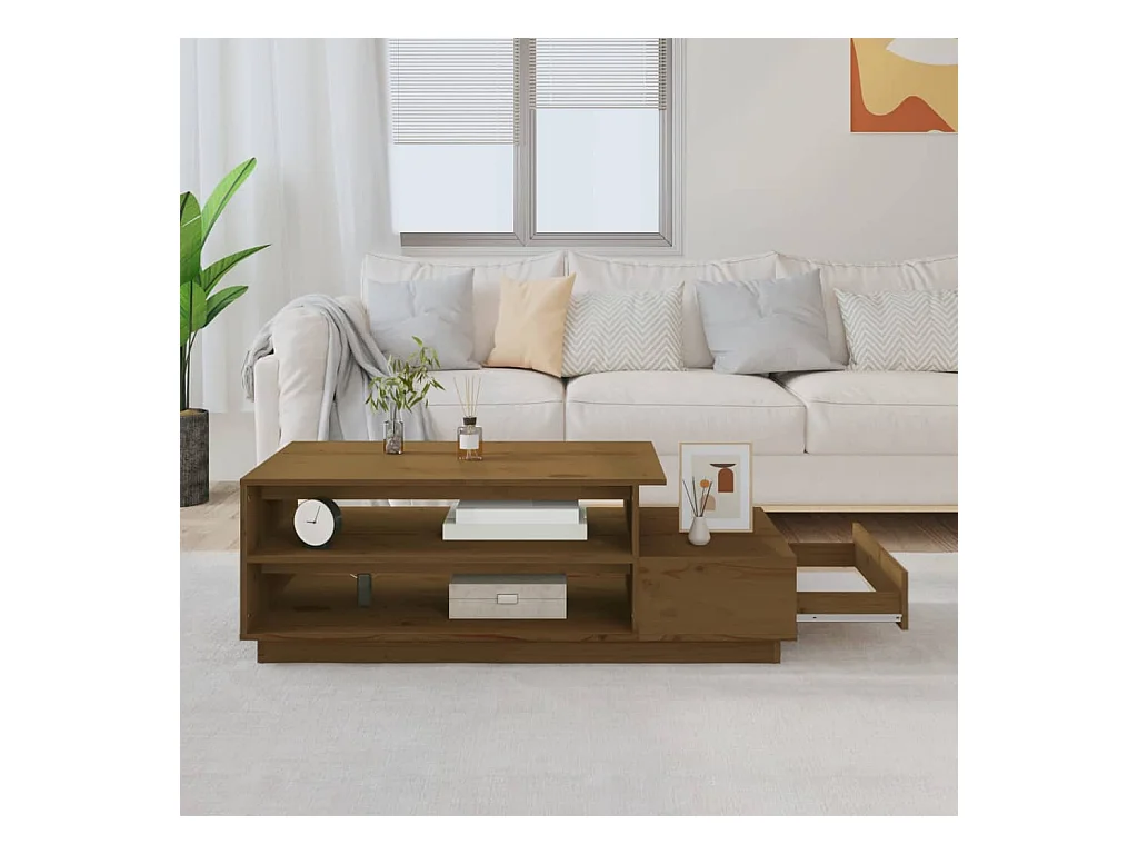 Mesa de centro 120x50x40,5cm madeira pinho maciça castanho mel PT321714