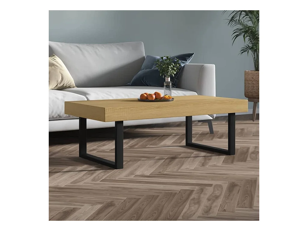 Mesa de centro 120x60x40 cm MDF e ferro castanho-claro e preto PT698795