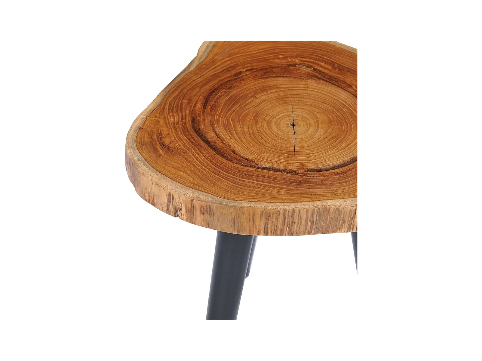 Mesa centro c/ forma de tigela e base de aço, madeira reciclada