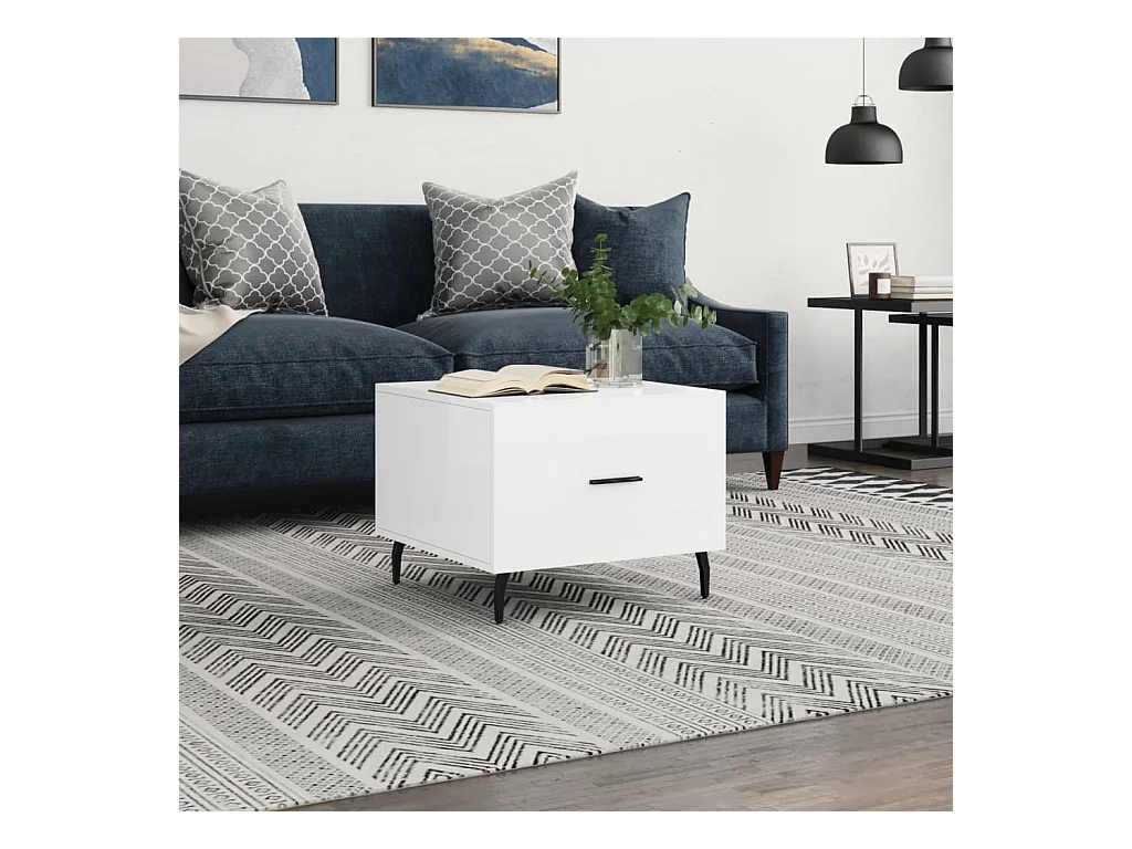 Mesa de centro 50x50x40 cm madeira processada branco brilhante