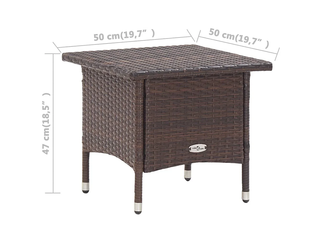 Mesa de centro para jardim quadrada 50x50x30cm vime PE castanho