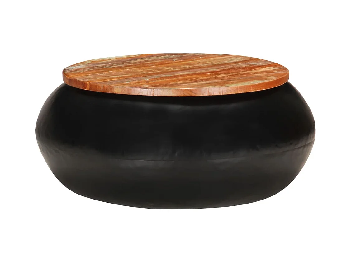 Mesa de centro redonda 68x37 cm madeira reciclada maciça
