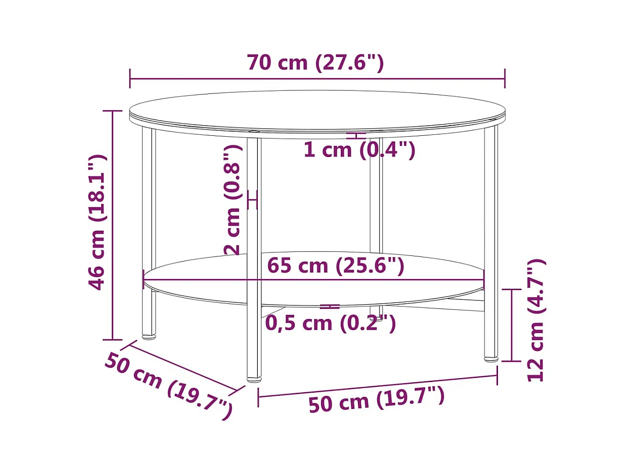 Mesa de centro 70 cm vidro temperado preto e preto mármore