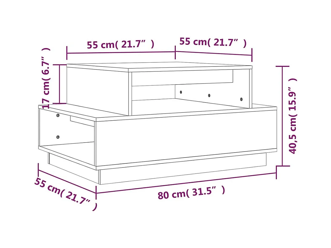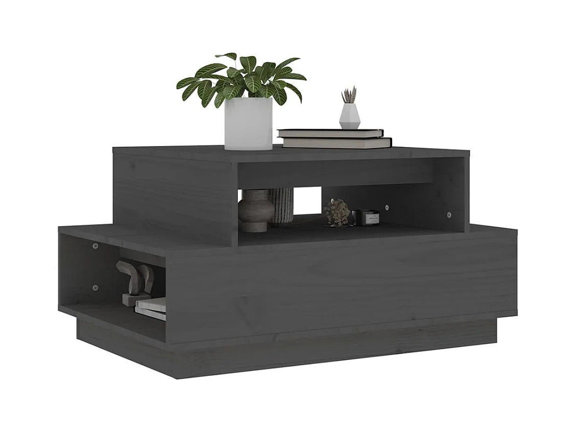 Mesa de centro 80x55x40,5 cm madeira de pinho maciça cinzento