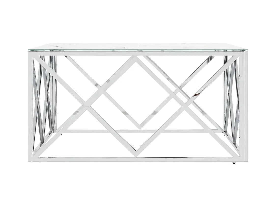 Mesa de centro aço inoxidável e vidro temperado prateado PT815712