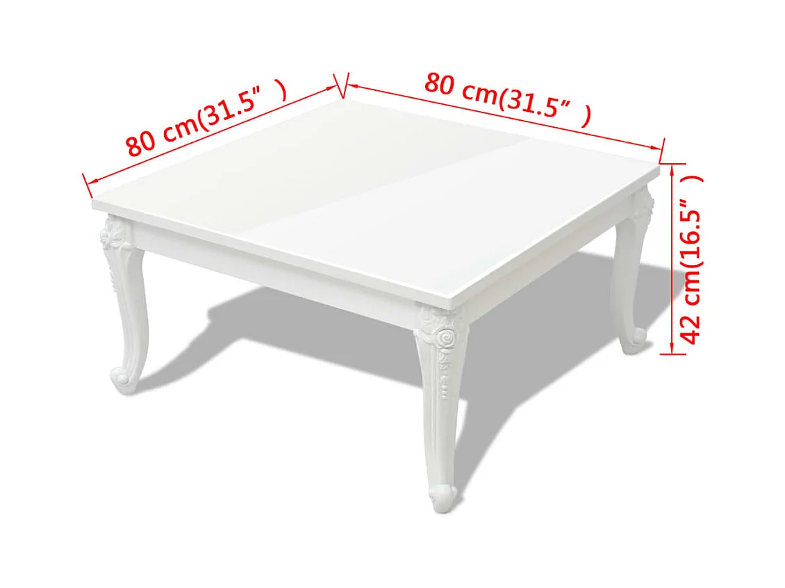 Mesa de centro, 80x80x42 cm, branco brilhante