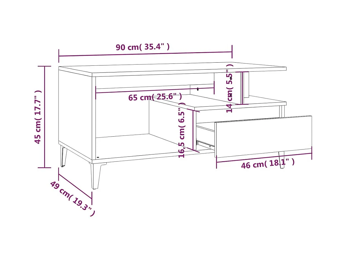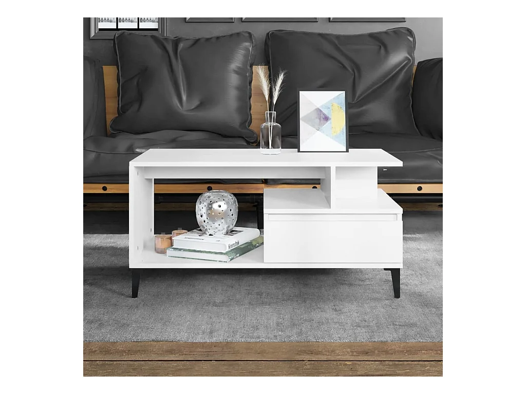 Mesa de centro 90x50x40 cm madeira processada branco brilhante