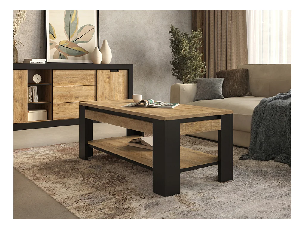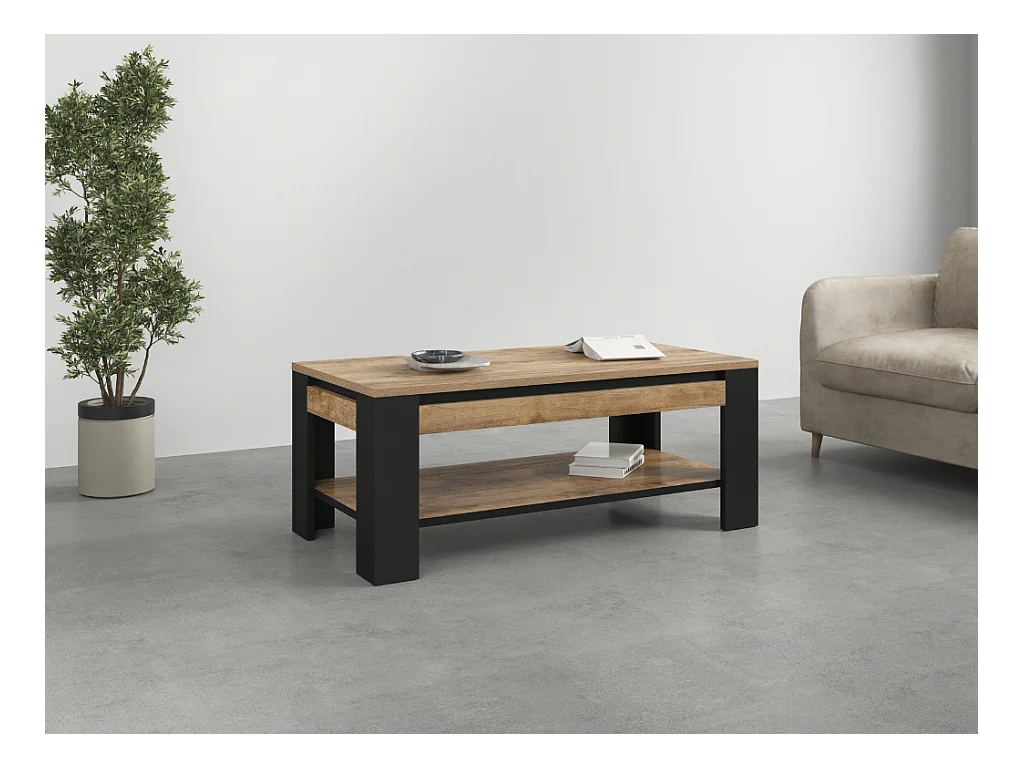 Mesa de Centro AMBIHOME DAVOR - Carvalho/Preto, C120xA49xP60cm