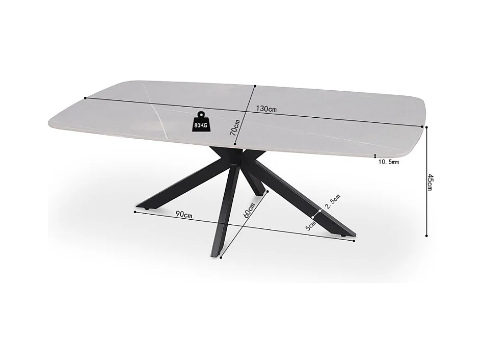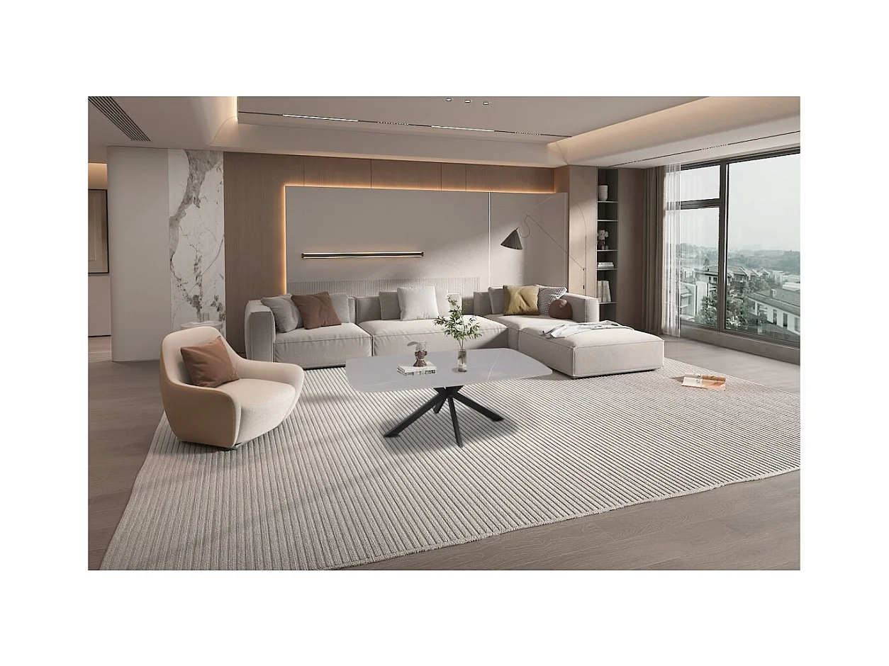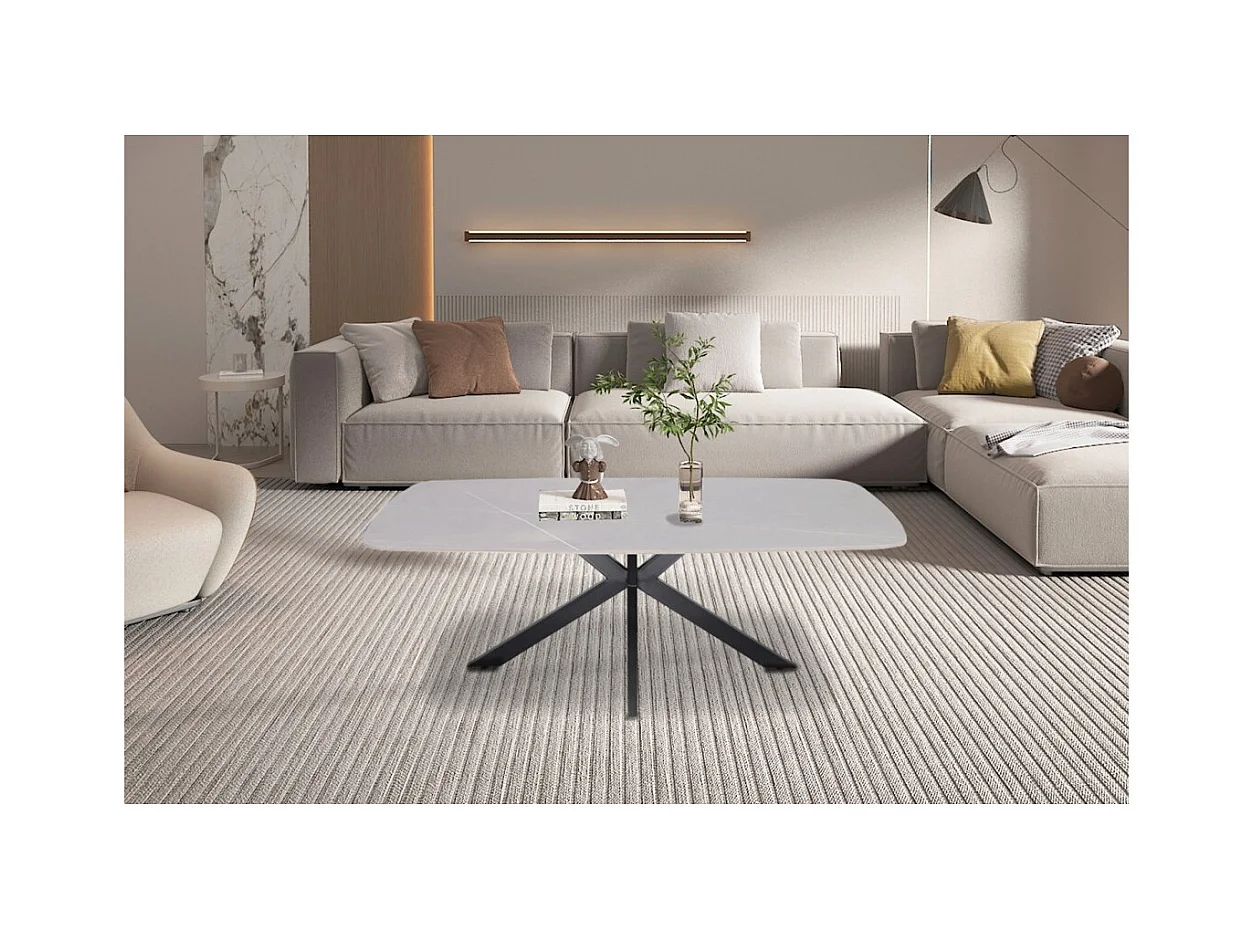 Mesa de Centro ARVENA – Mesa de Centro Retangular 130x70 cm – Pedra Cinza & Metal – Design Contemporâneo e Refinado
