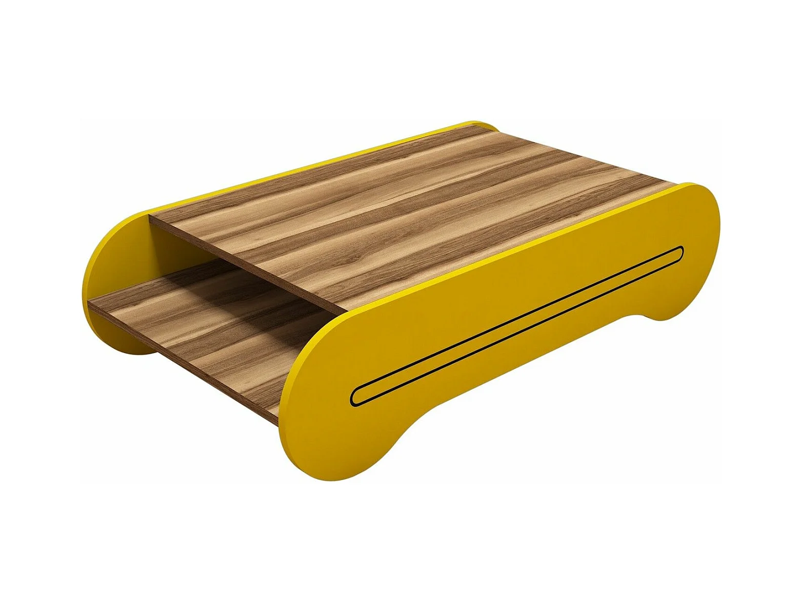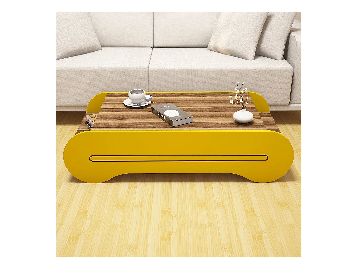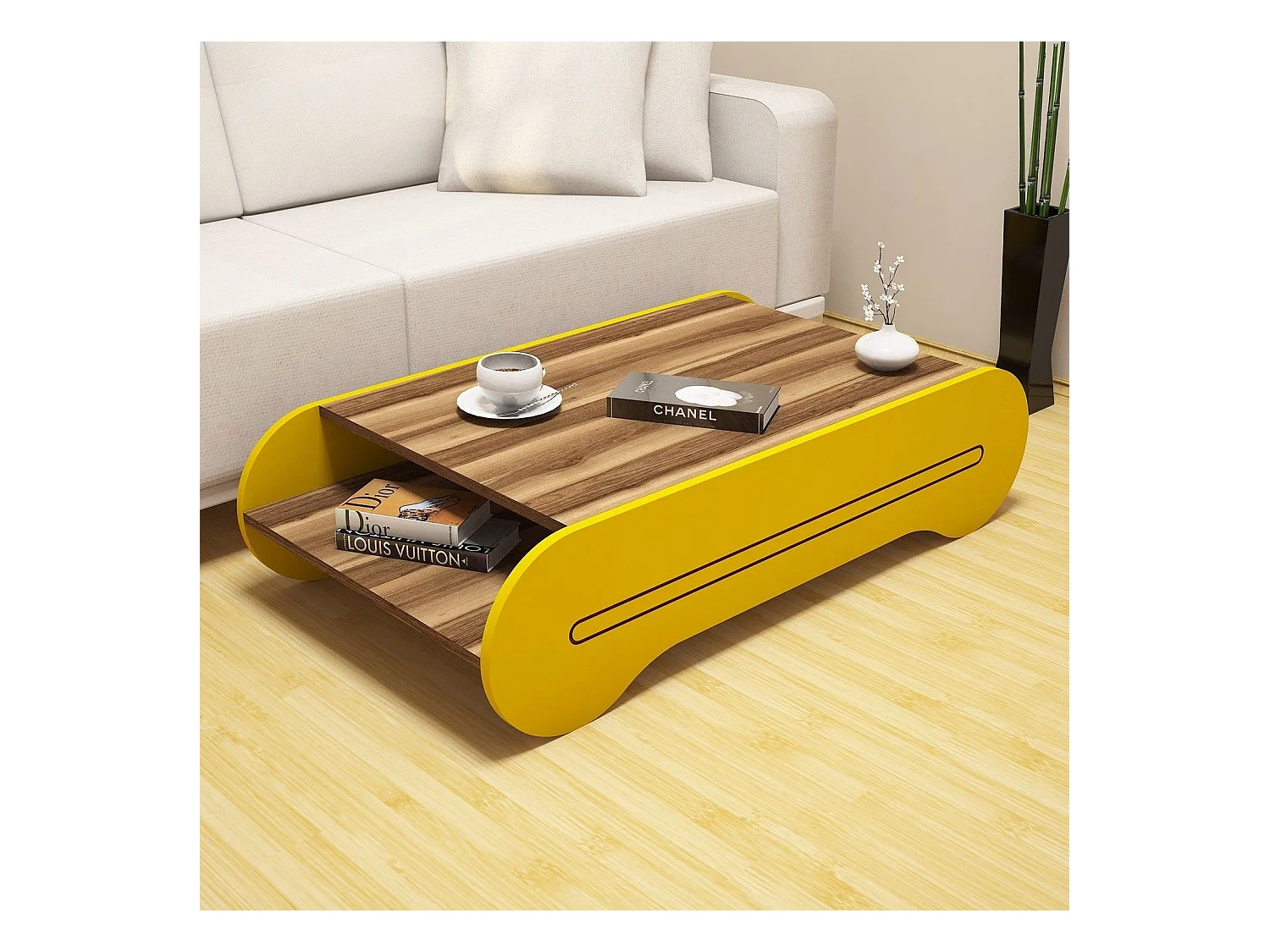 Mesa de Centro Boémia em Nogueira e Amarelo - Estilo e Funcionalidade