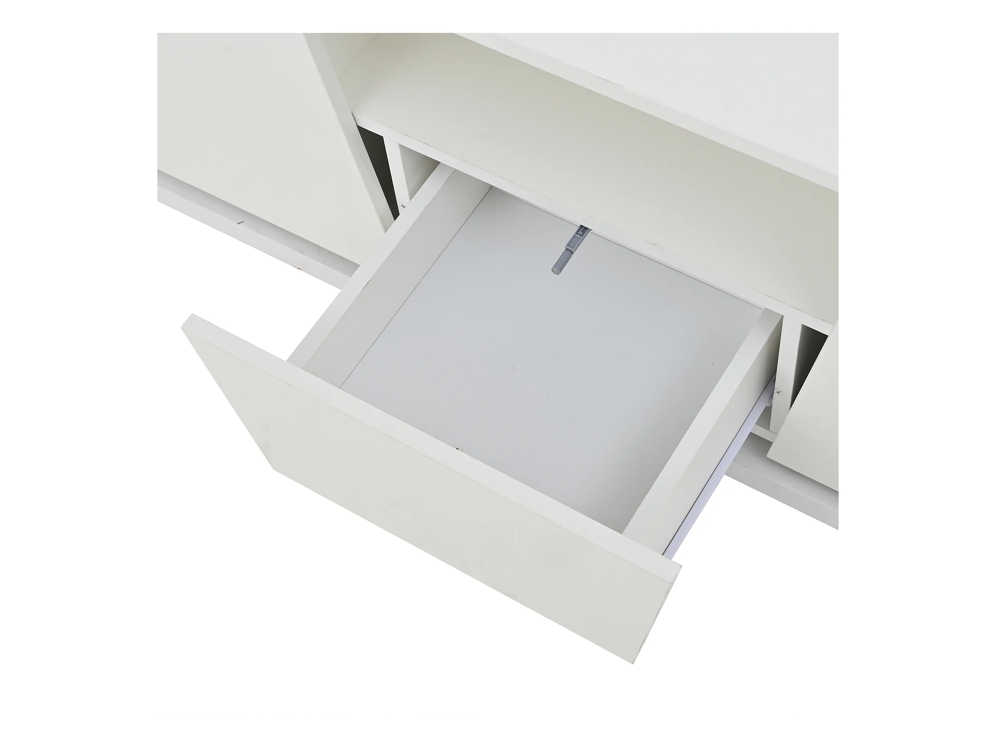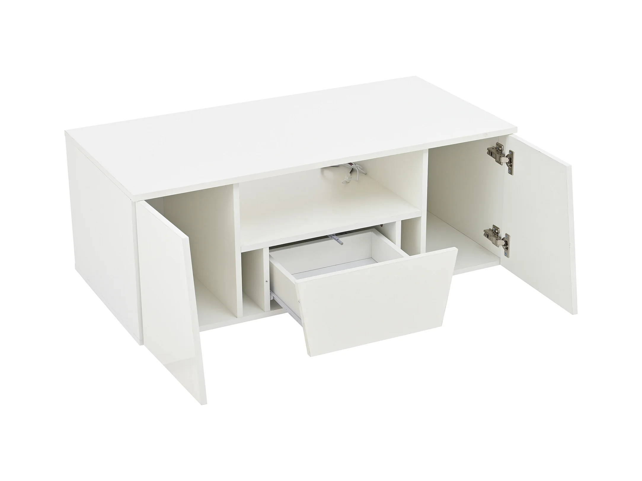 Mesa de centro branca com 2 portas e 1 gaveta - Tampo brilhante e iluminação LED - Design irregular