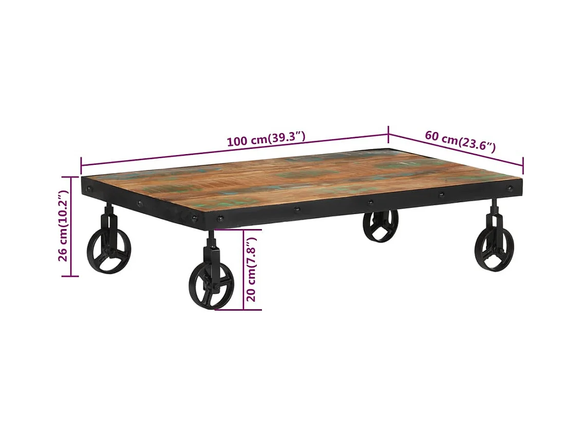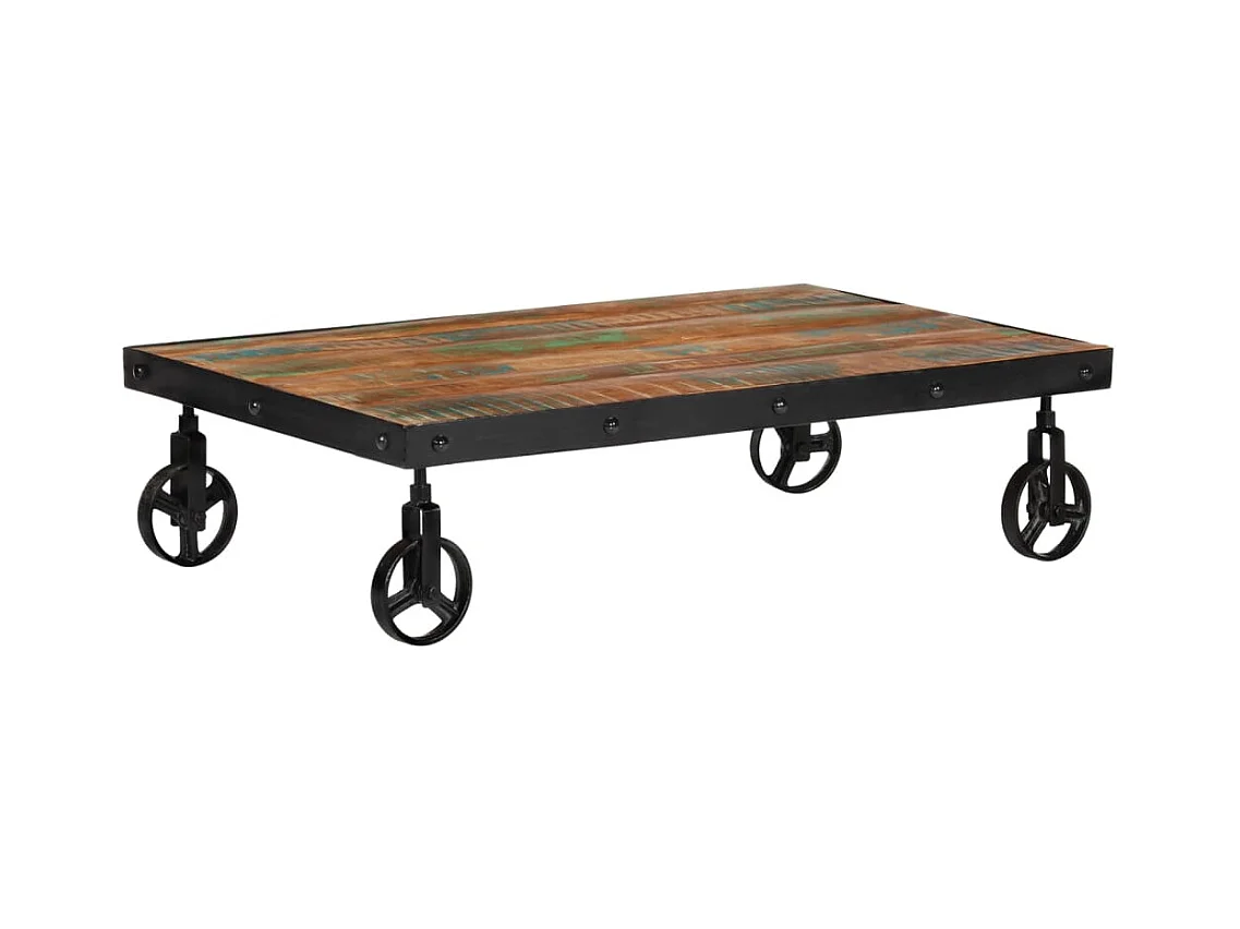 Mesa de centro c/ rodas 100x60x26 cm madeira recuperada maciça