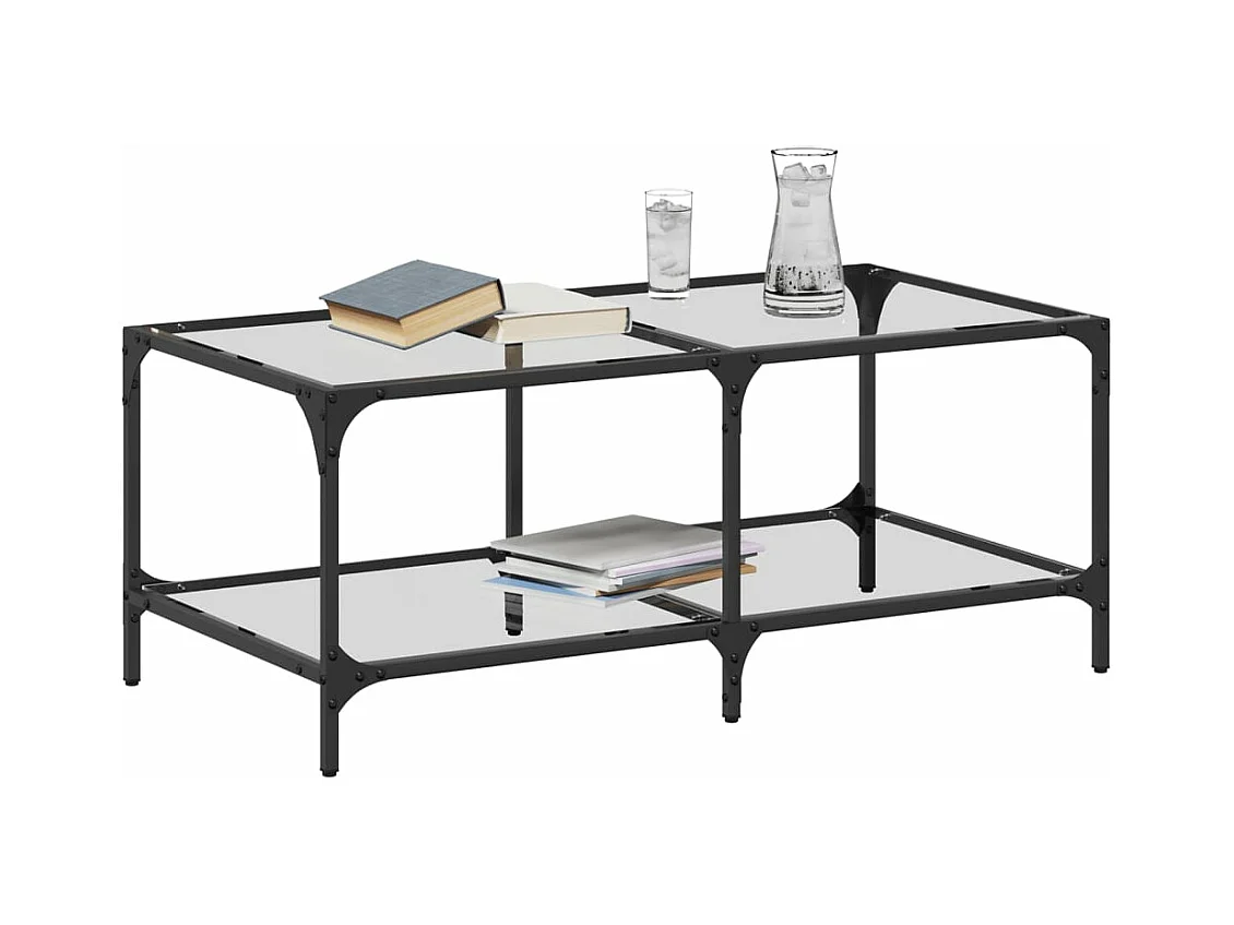Mesa de centro c/ topo em vidro transparente 98,5x50x40 cm aço