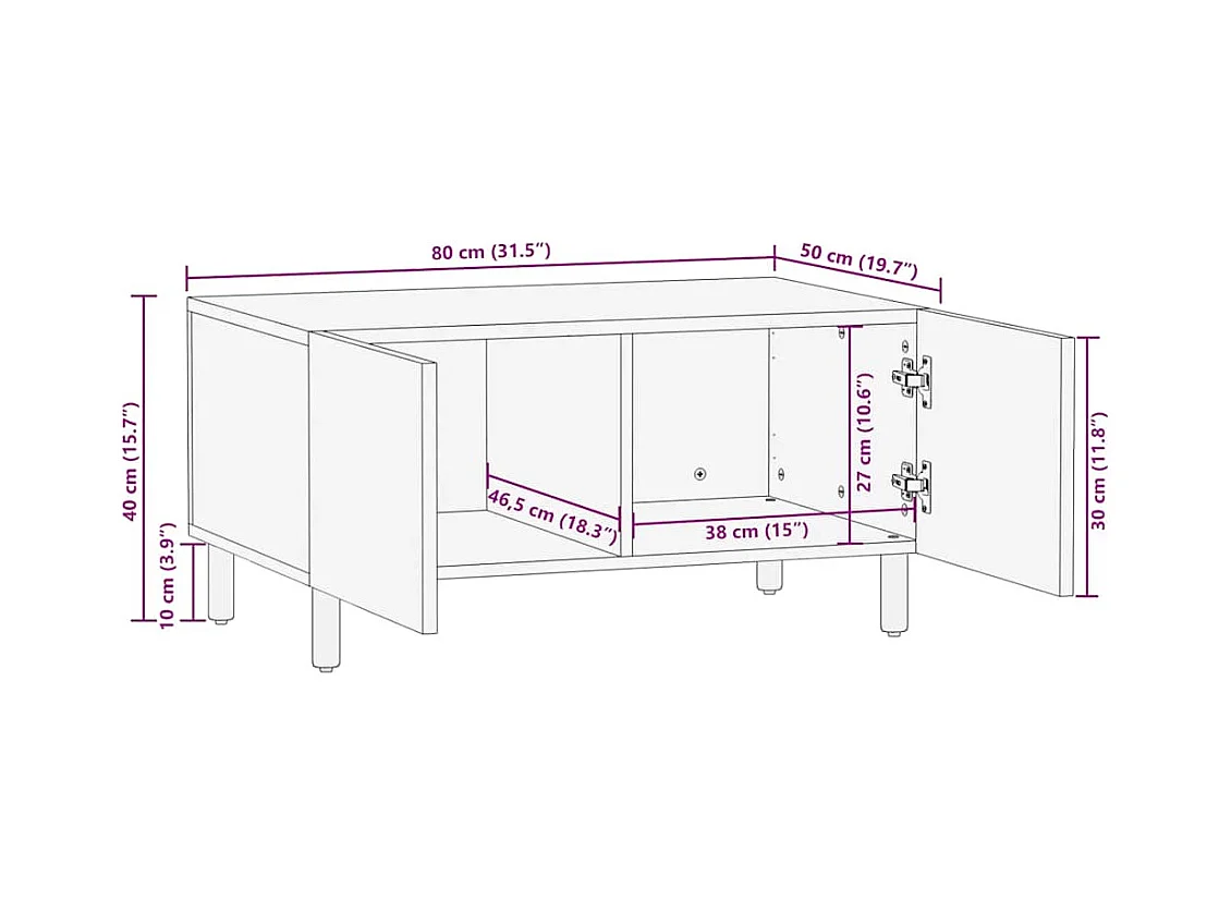 Mesa de centro castanho 80x50x40 cm madeira de mangueira maciça