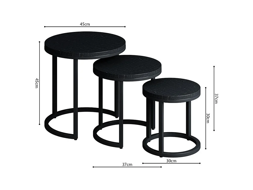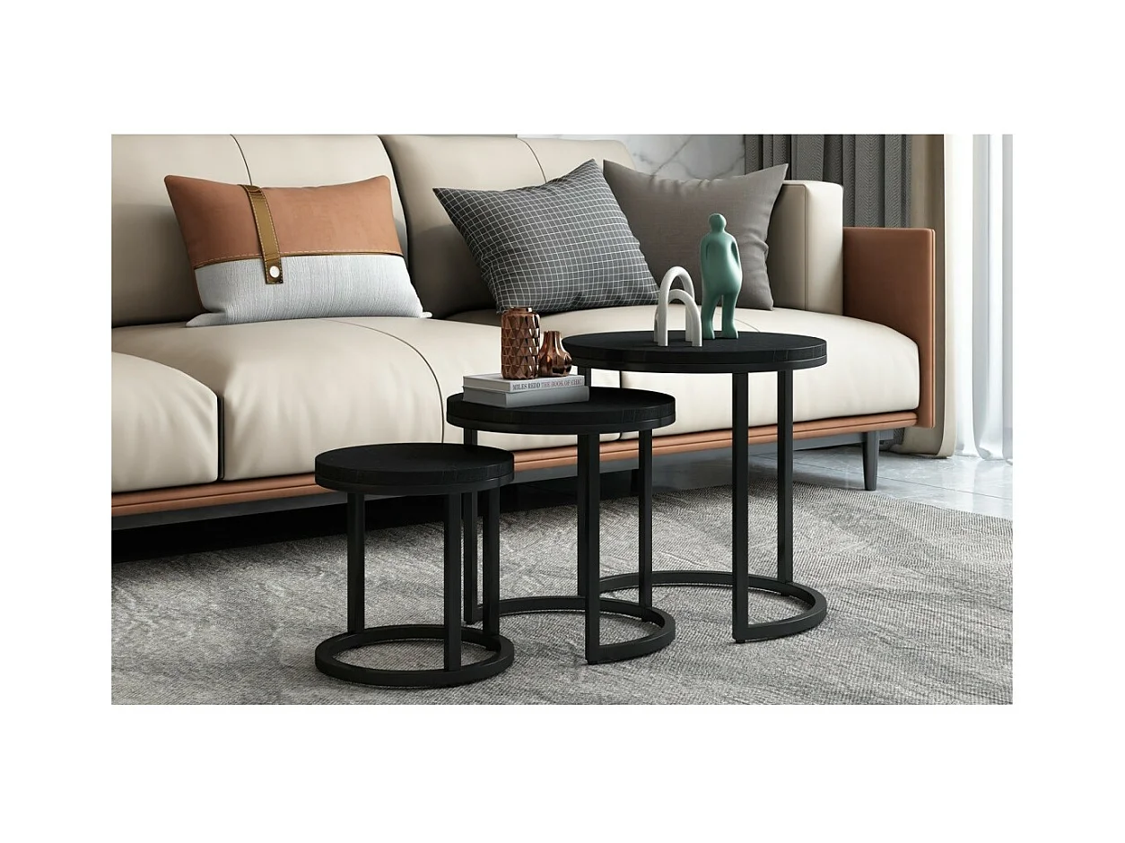 Conjunto de 2 mesas de centro redondas em MDF alto brilho para sala, quarto, preto e dourado