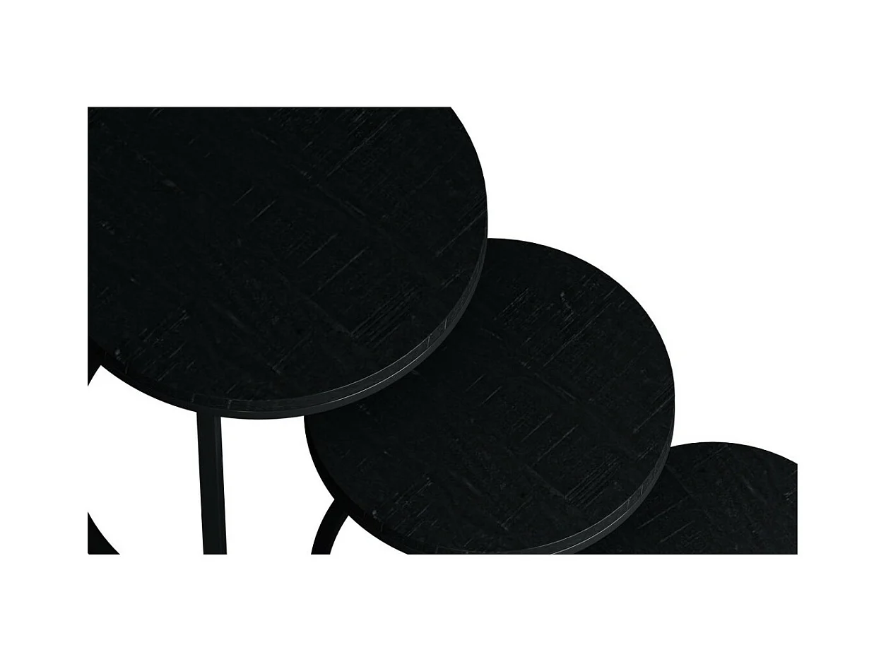 Conjunto de 2 mesas de centro redondas encaixáveis, mesa de apoio com tampo em mármore e gavetas em vime, pernas em ferro dourado - 70x70x45,5+50x50x38,5cm Preto
