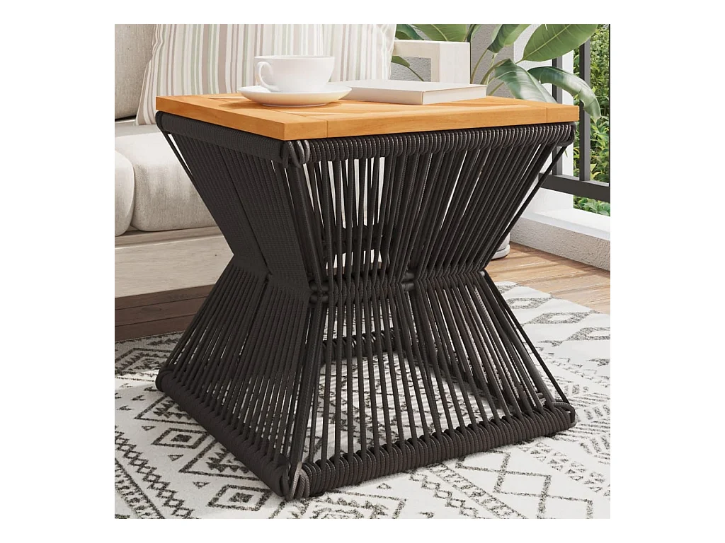 Mesa de centro com base de arame 38x38x38 cm acácia maciça