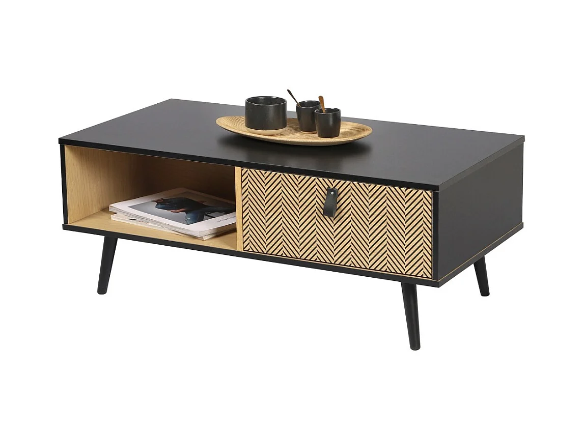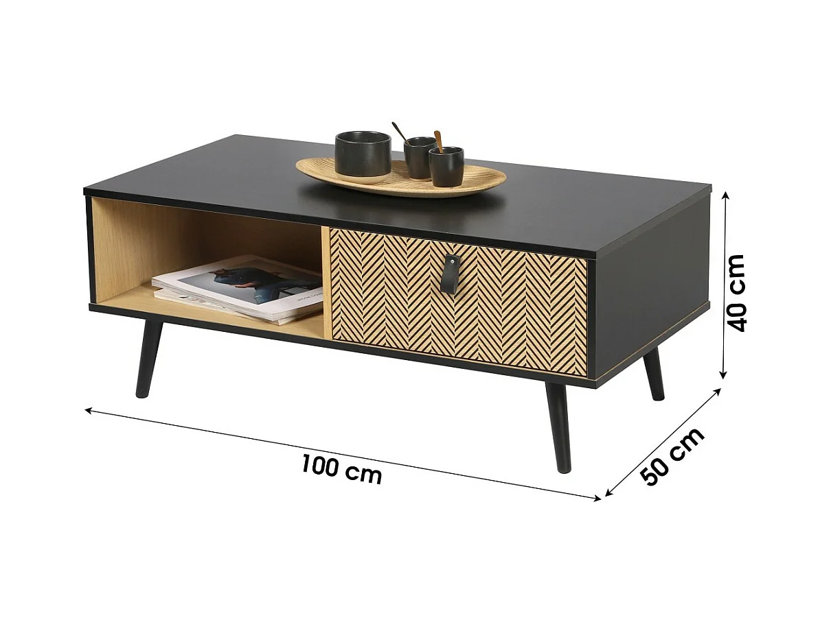 Mesa de centro com gaveta de estilo moderno e design, dimensões 100x50x40cm.