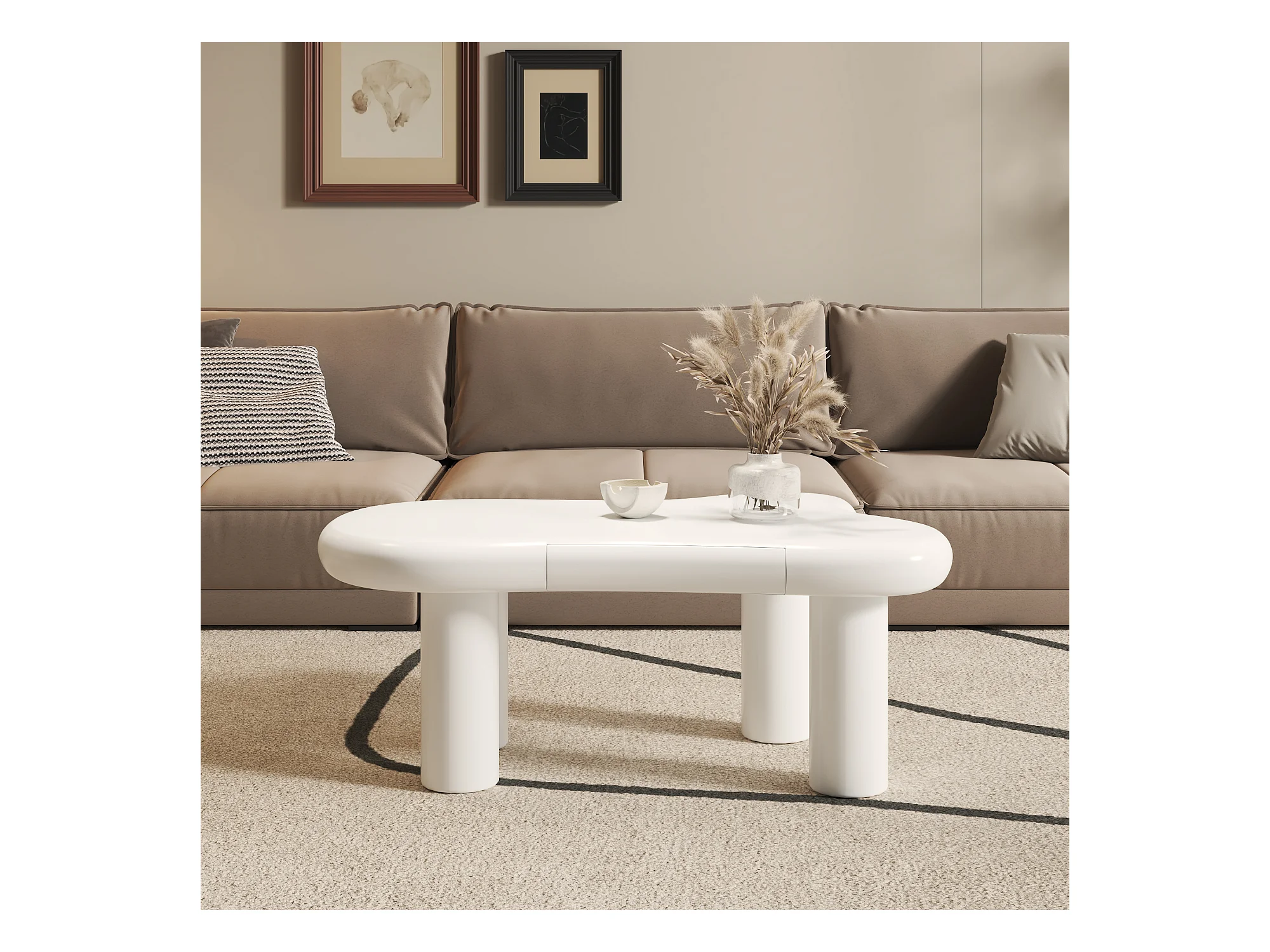 Mesa de centro com gavetas e compartimento aberto - tampo em forma de nuvem - Branco