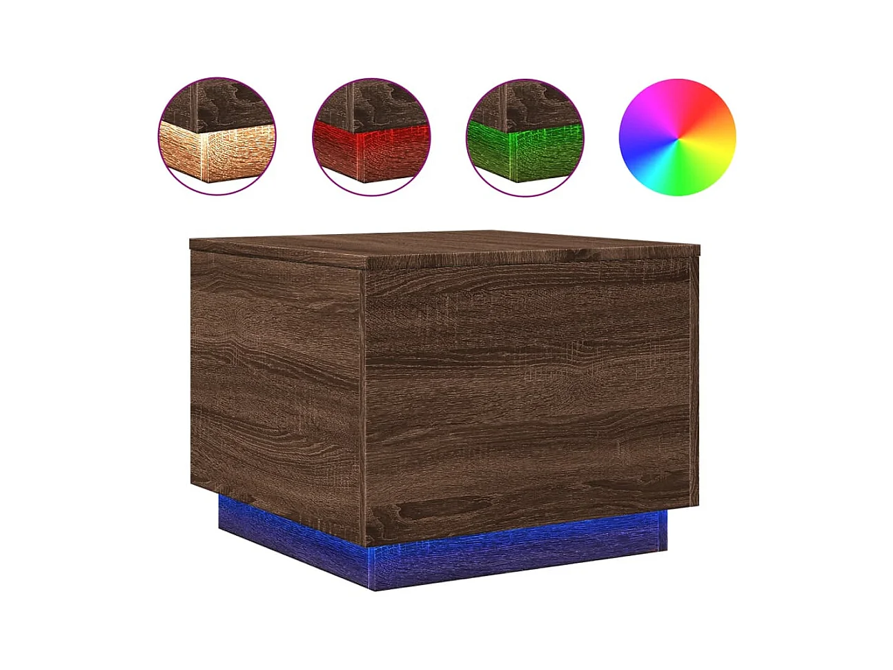 Mesa de centro com luzes LED 50x50x40 cm carvalho fumado PT694785