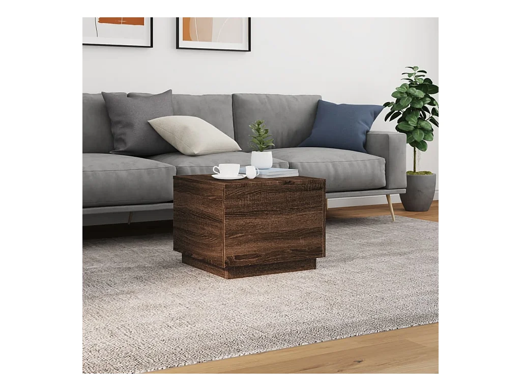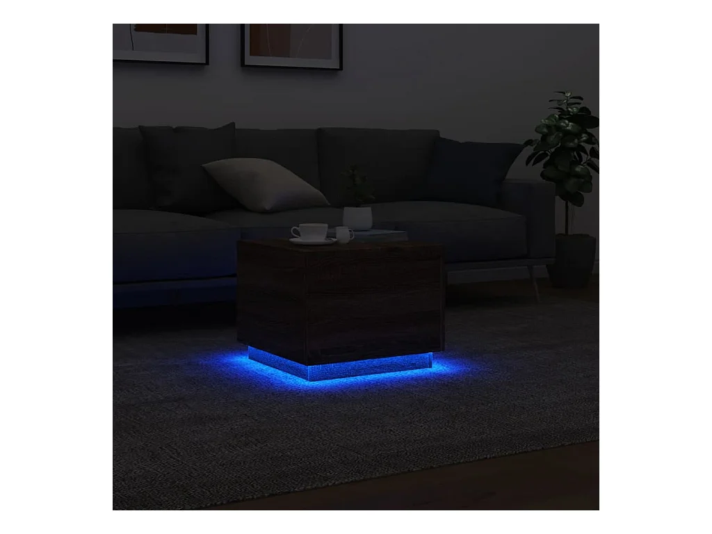 Mesa de centro com luzes LED 50x50x40 cm carvalho castanho PT420226