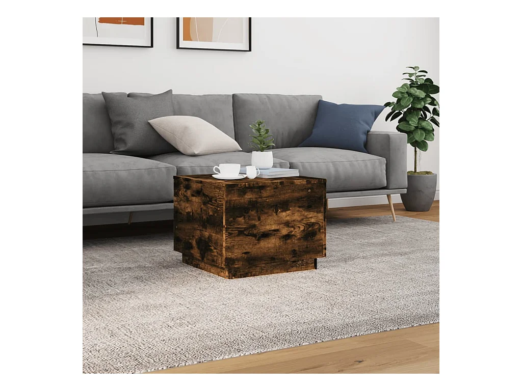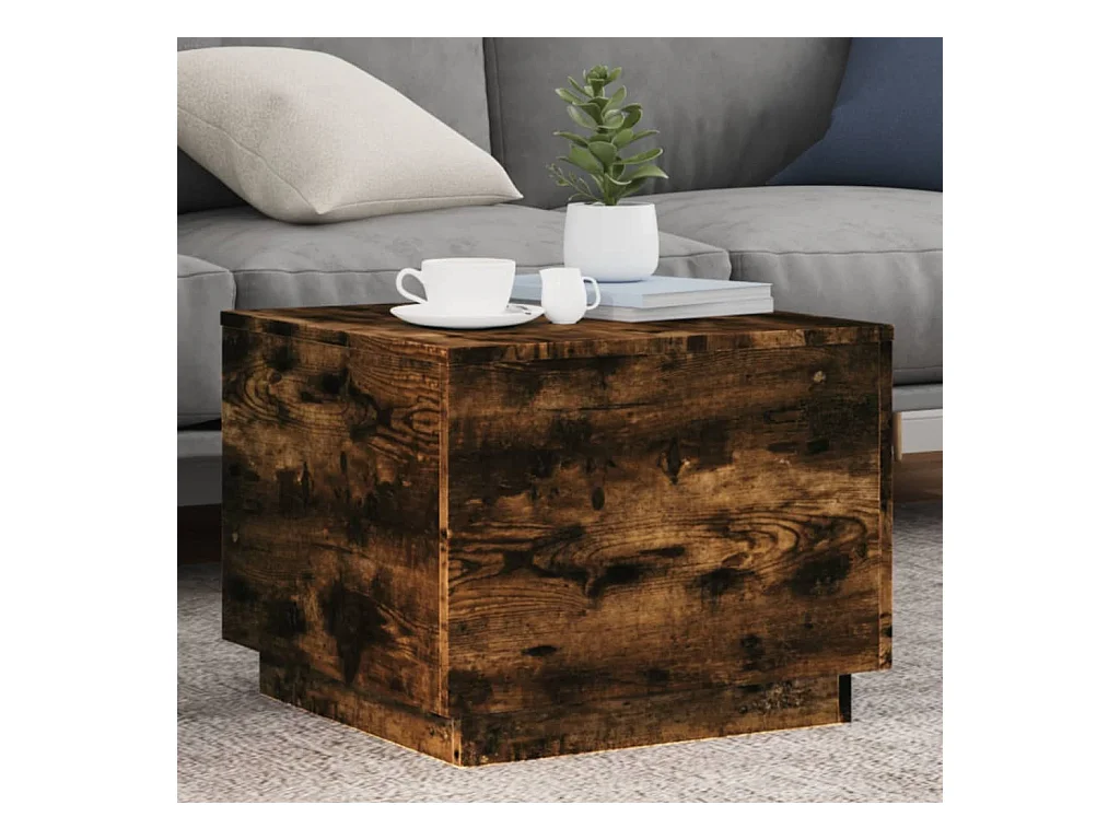 Mesa de centro com luzes LED 50x50x40 cm carvalho fumado PT886535