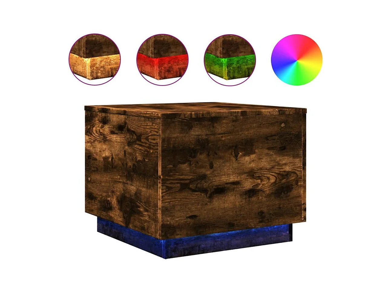Mesa de centro com luzes LED 50x50x40 cm carvalho fumado PT694785