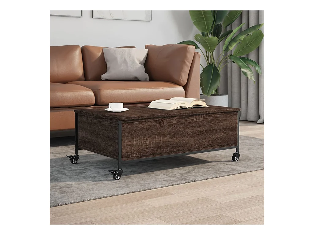 Mesa de centro com rodas derivados de madeira carvalho fumado PT553338