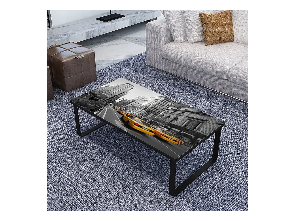 Mesa de centro, tampo de vidro com impressão de arco-íris PT347807