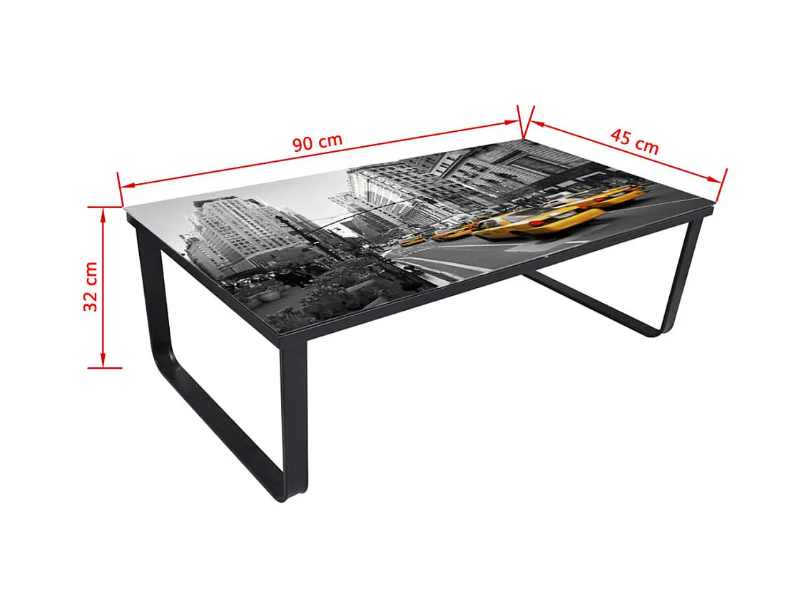 Mesa de centro, tampo de vidro com impressão cabine telefónica